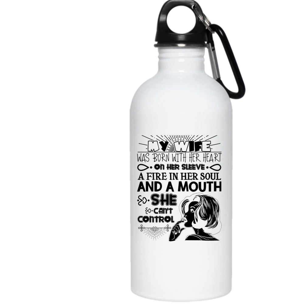 My Wife Was Born With Her Heart On Her Sleeve 20 oz Stainless Steel Bottle,Cool Wife Outdoor Sports Water Bottle