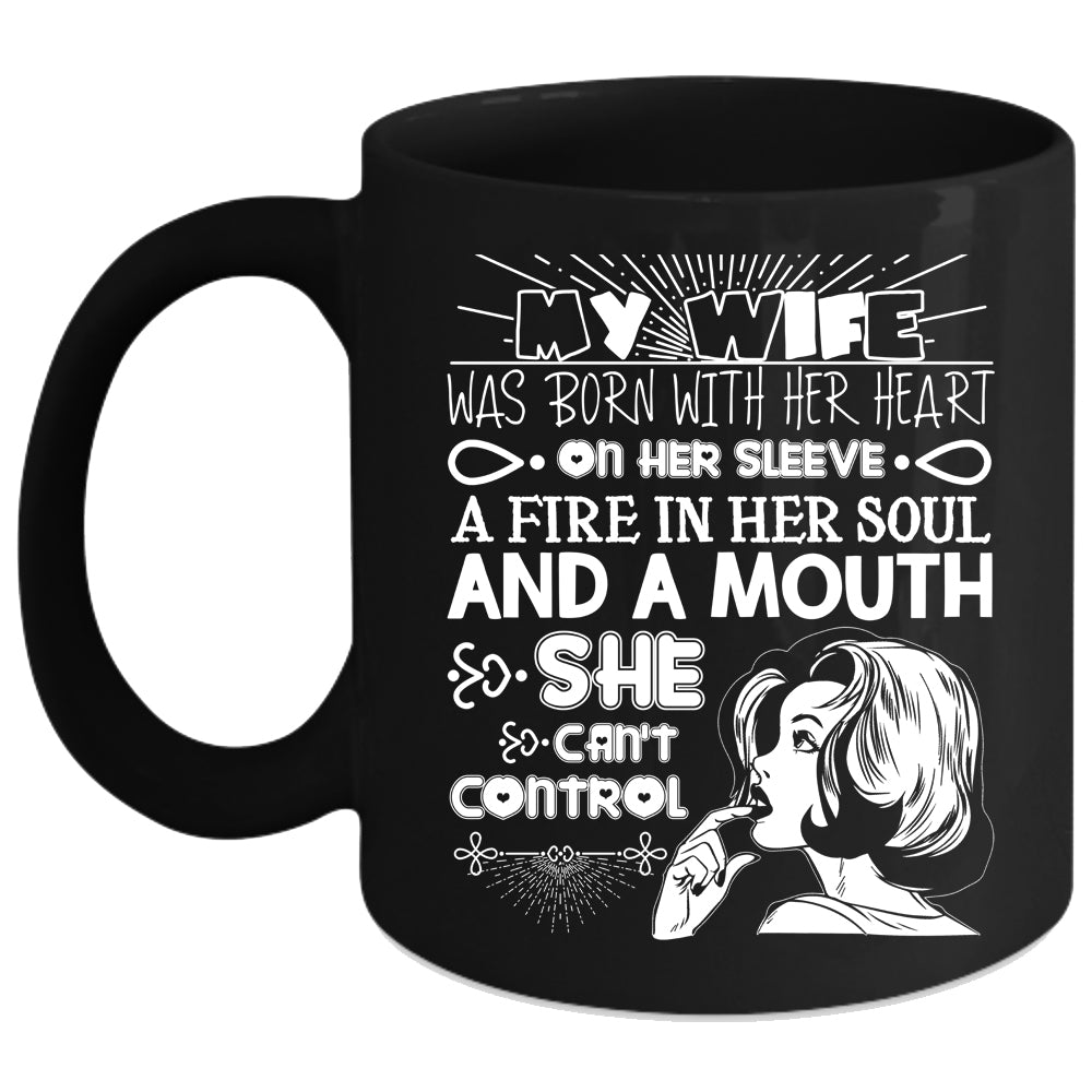 My Wife Was Born With Her Heart On Her Sleeve Coffee Mug, Cool Wife Coffee Cup