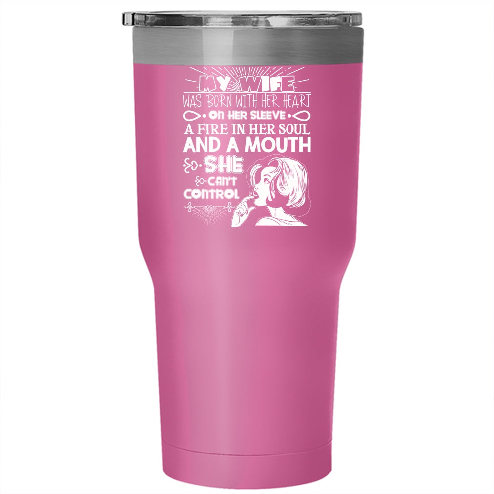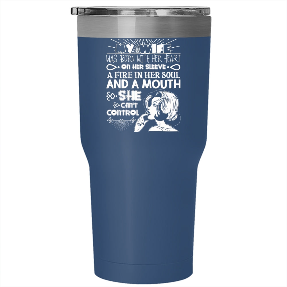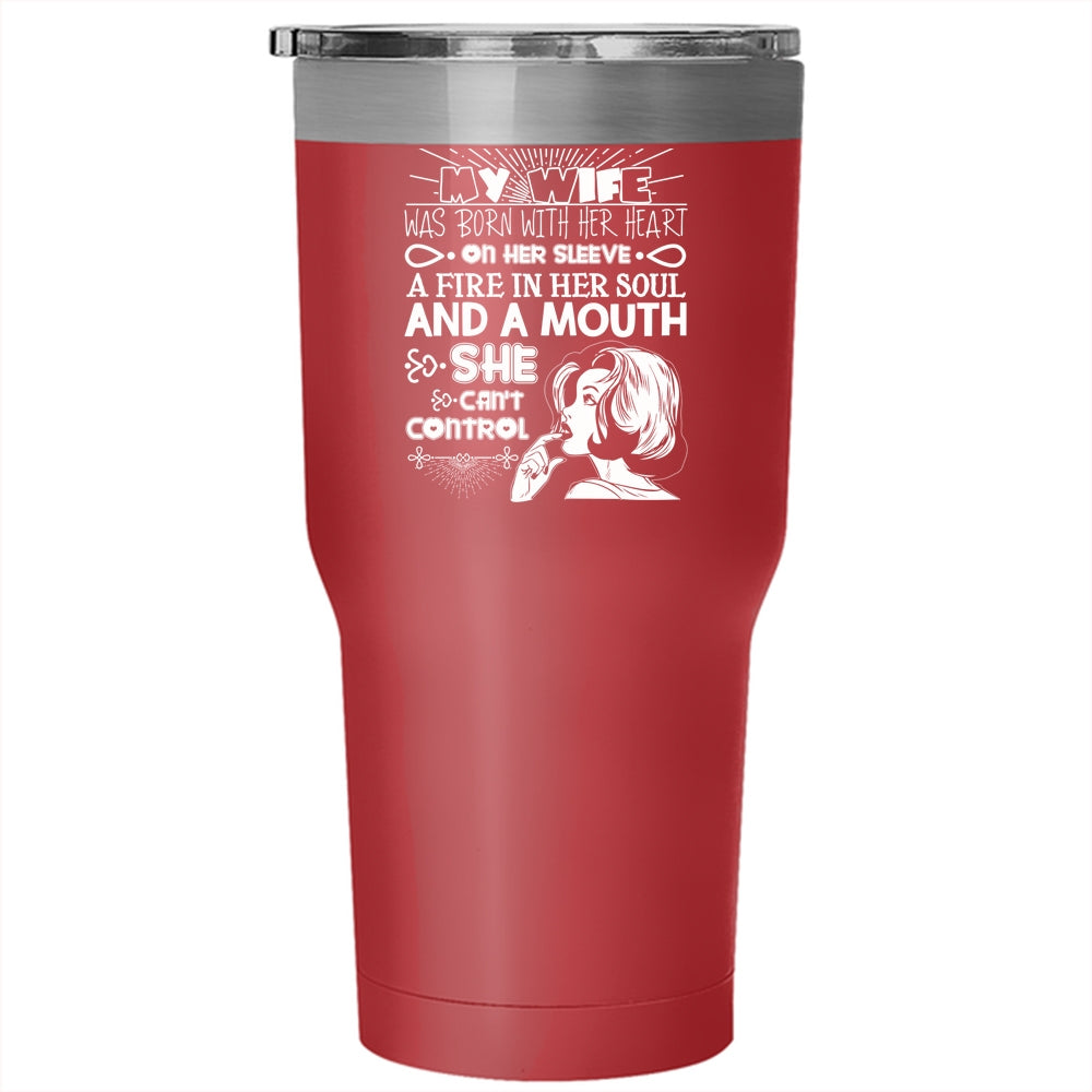 My Wife Was Born With Her Heart On Her Sleeve Tumbler 30 oz Stainless Steel, Cool Wife Travel Mug