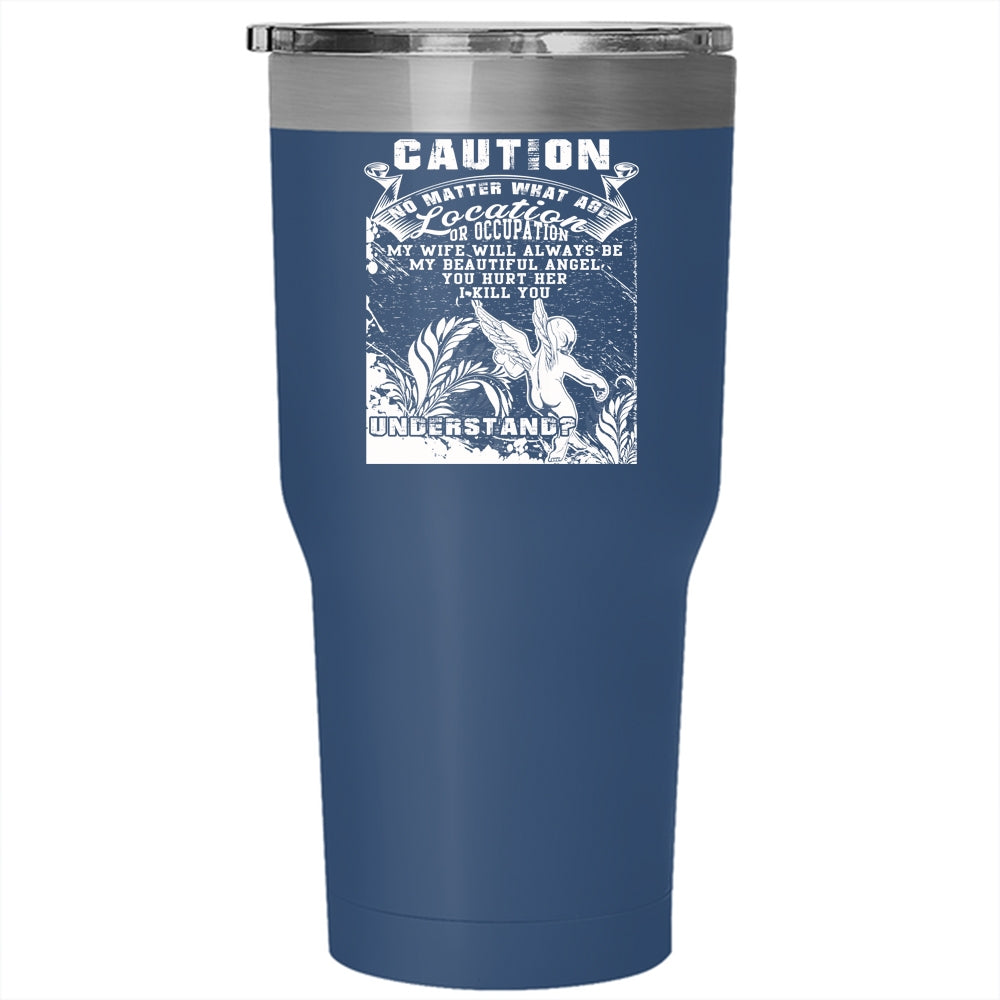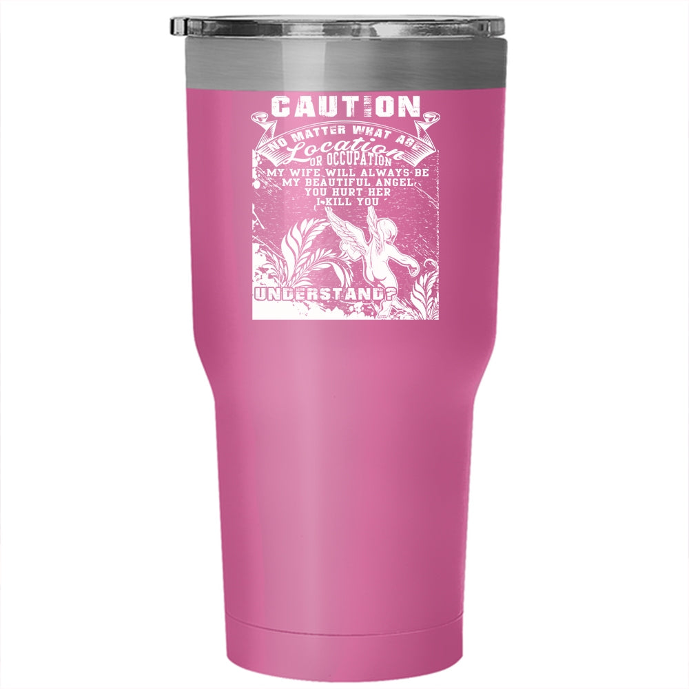 My Wife Will Always Be My Angel Tumbler 30 oz Stainless Steel, Don't Hurt Her Travel Mug