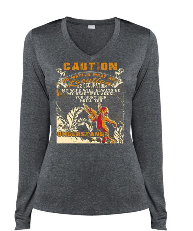My Wife Will Always Be My Beautiful Angel T Shirt, Being A Husband T Shirt, Cool Shirt (Ladies LS Heather V-Neck)