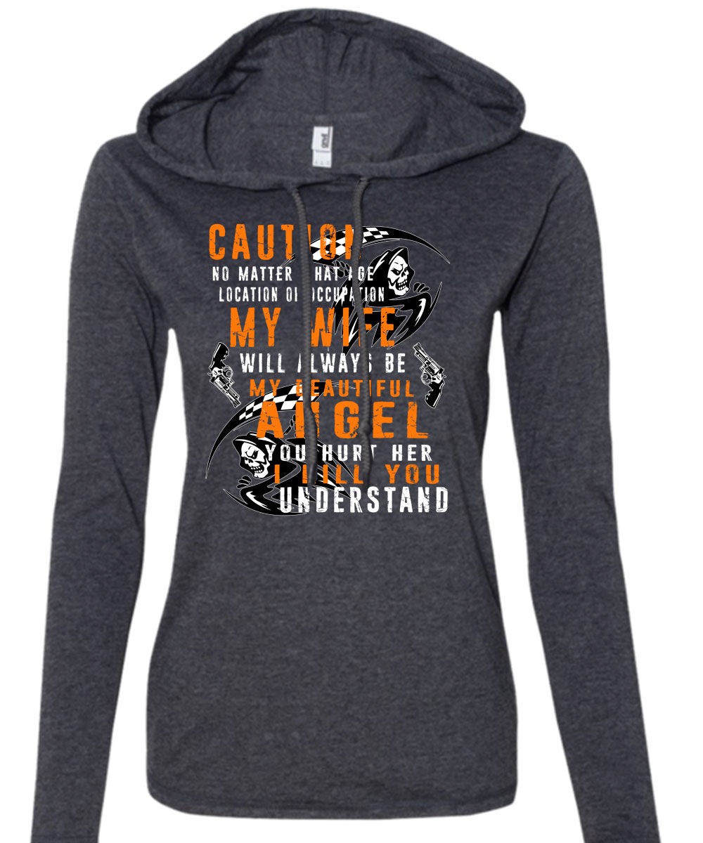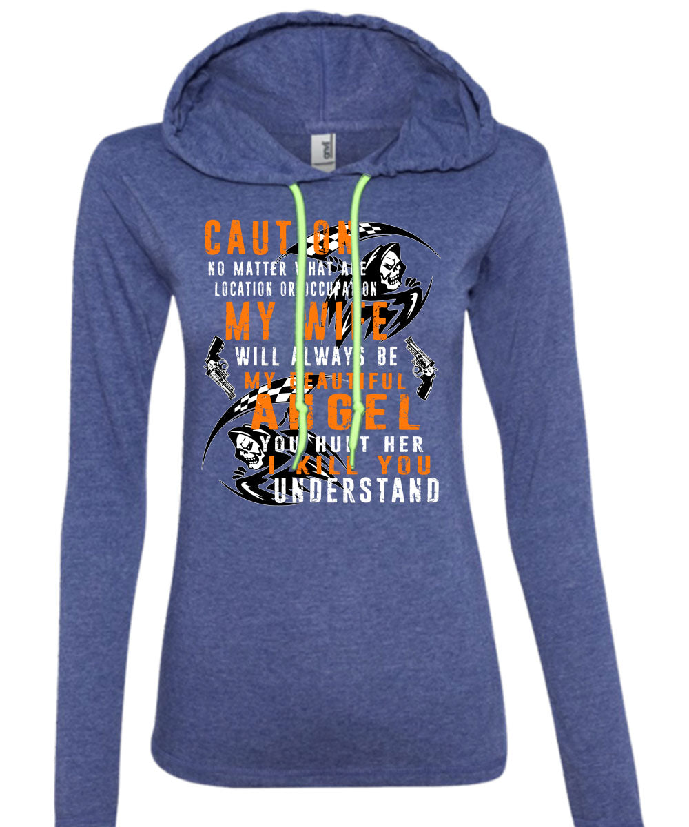 My Wife Will Always Be My Beautiful Angel T Shirt, I Kill You Understand T Shirt (Anvil Ladies Ringspun Hooded)