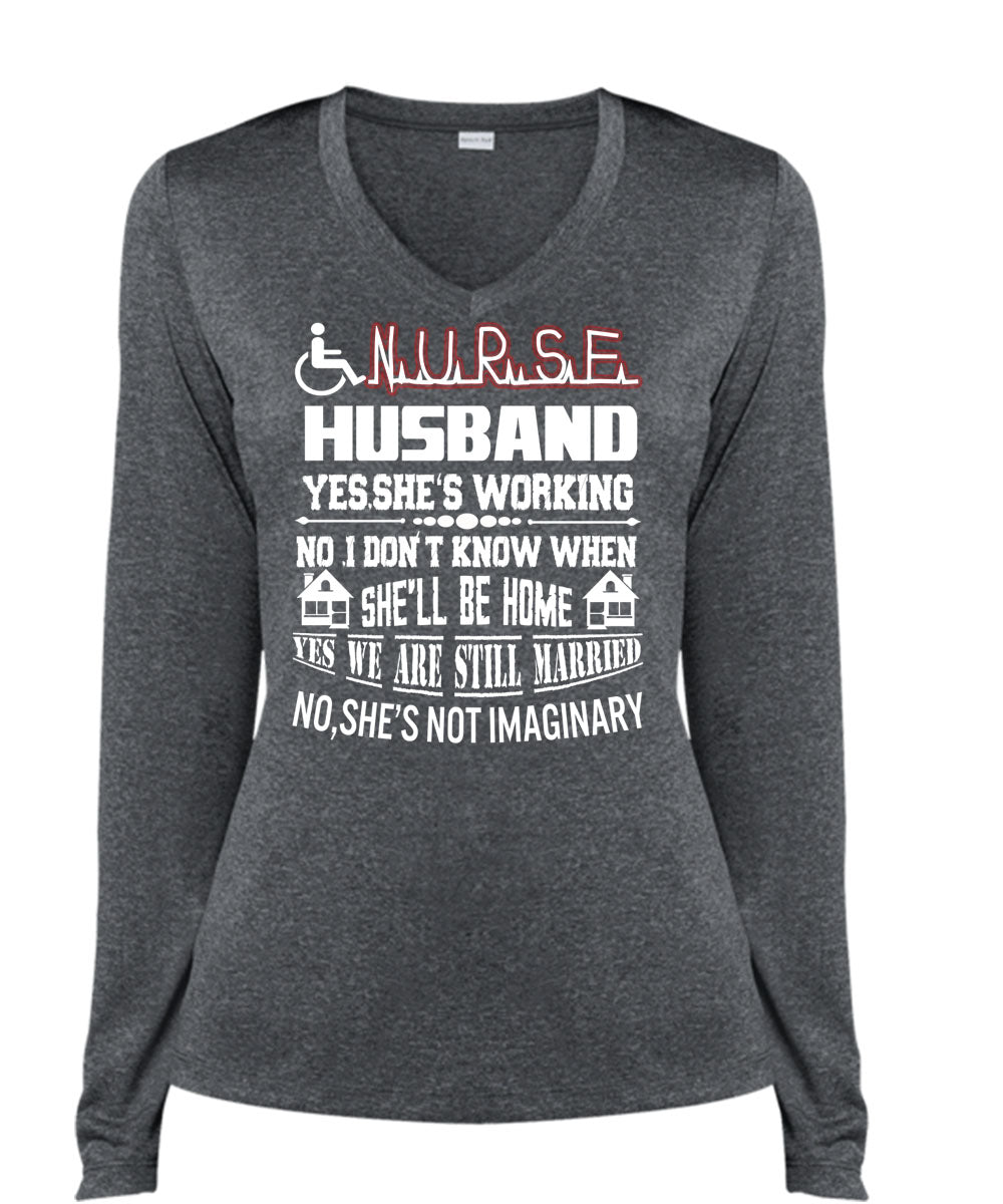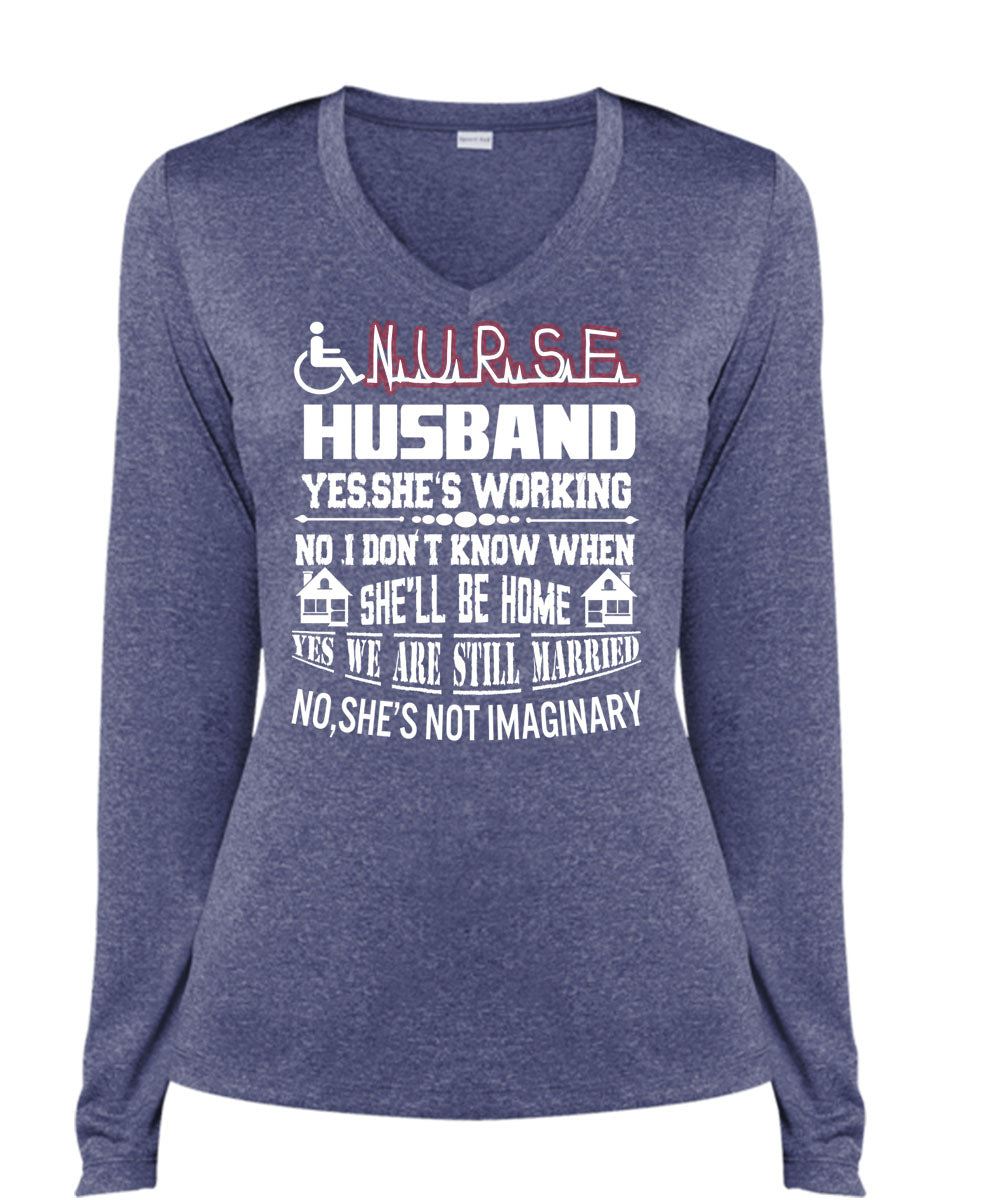 Nurse Husband She's Working T Shirt, We Are Still Married T Shirt, Cool Shirt (Ladies LS Heather V-Neck)