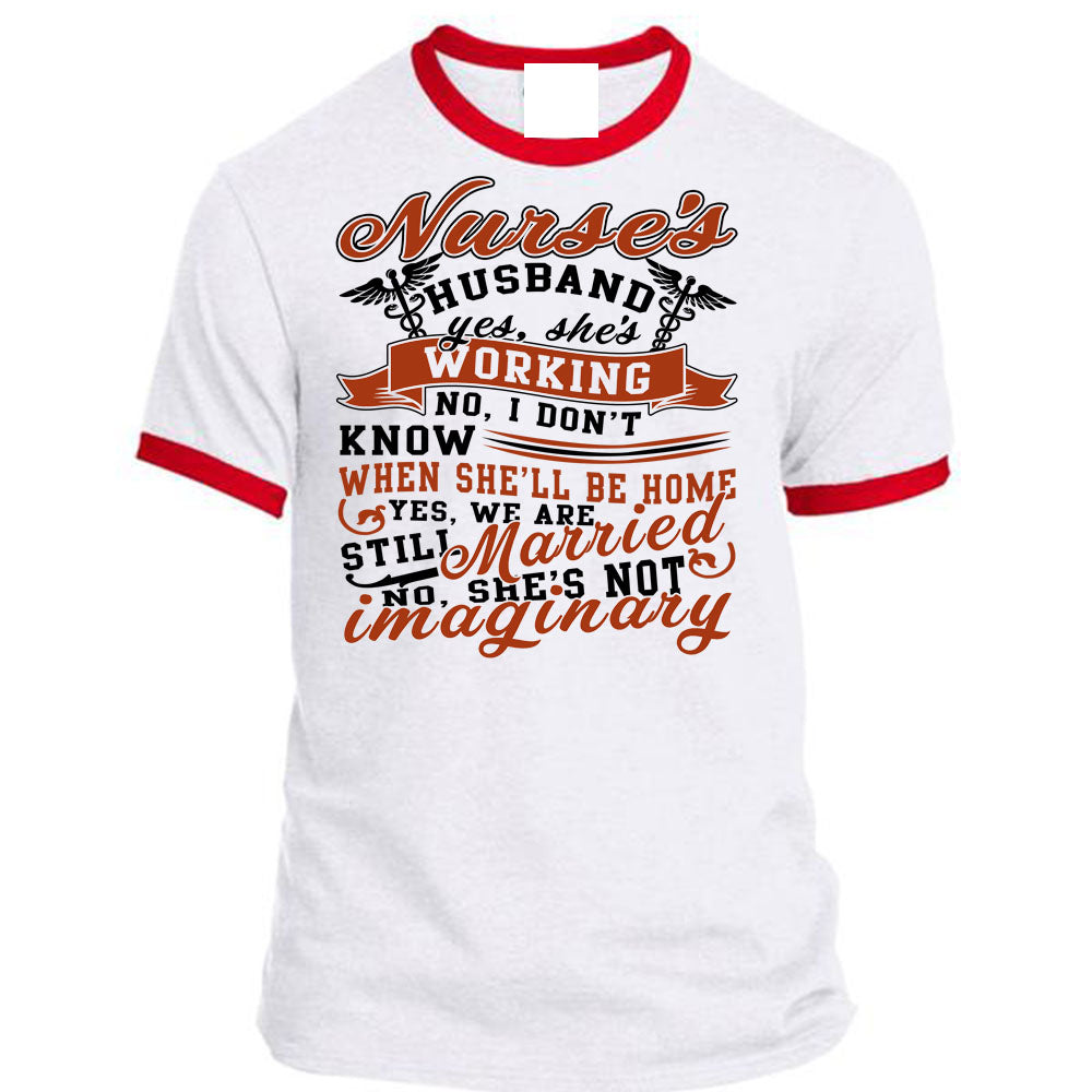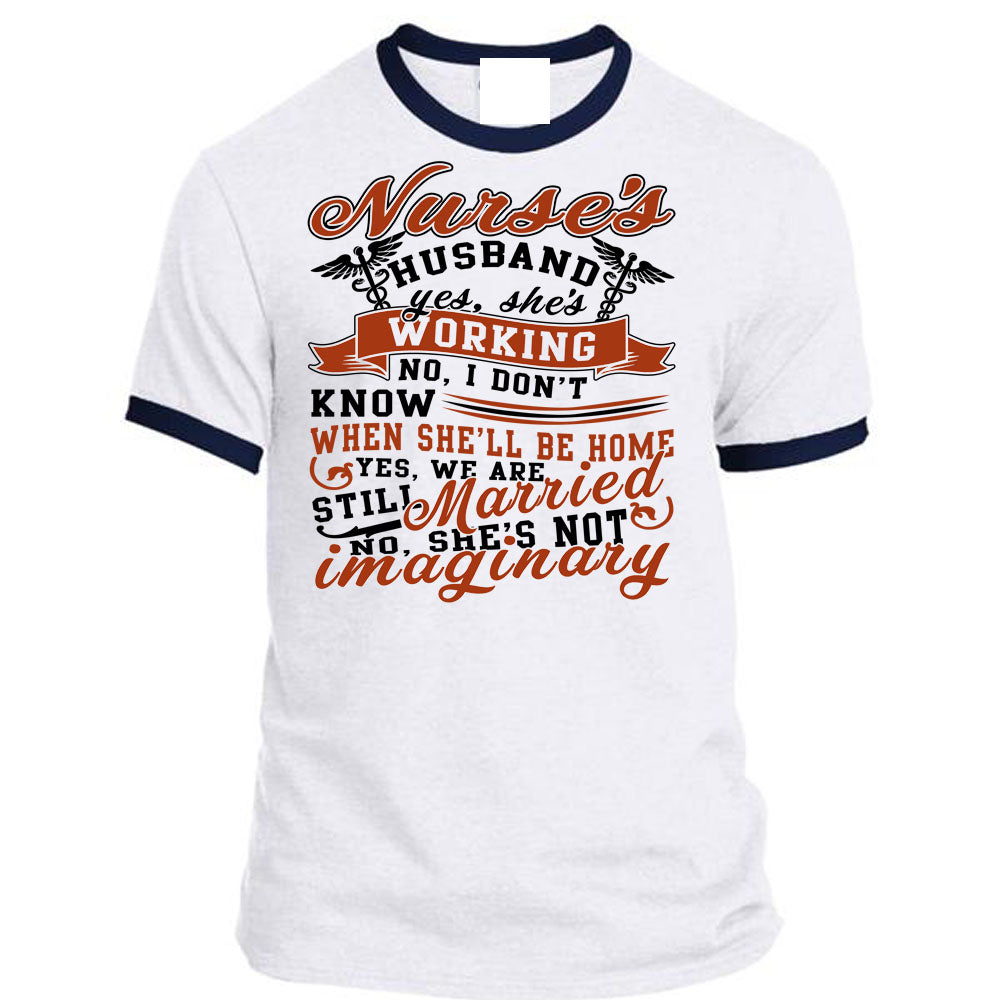 Nurse's Husband He's Working T Shirt, I Love Nursing T Shirt, Awesome T-Shirts