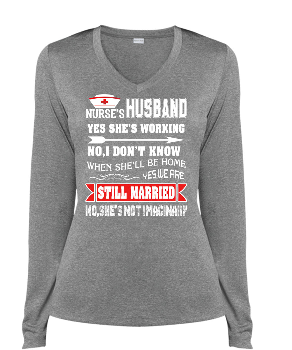 Nurse's Husband She's Working T Shirt, We Are Still Married T Shirt, Cool Shirt (Ladies LS Heather V-Neck)