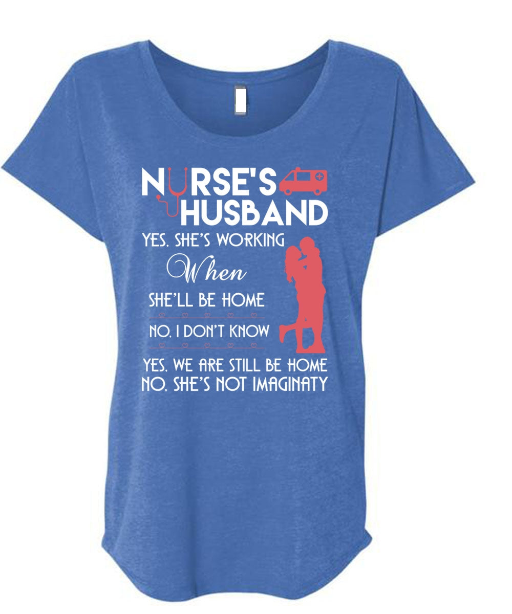 Nurse's Husband T Shirt, We Are Still Be Home T Shirt, Cool Shirt (Ladies' Triblend Dolman Sleeve)