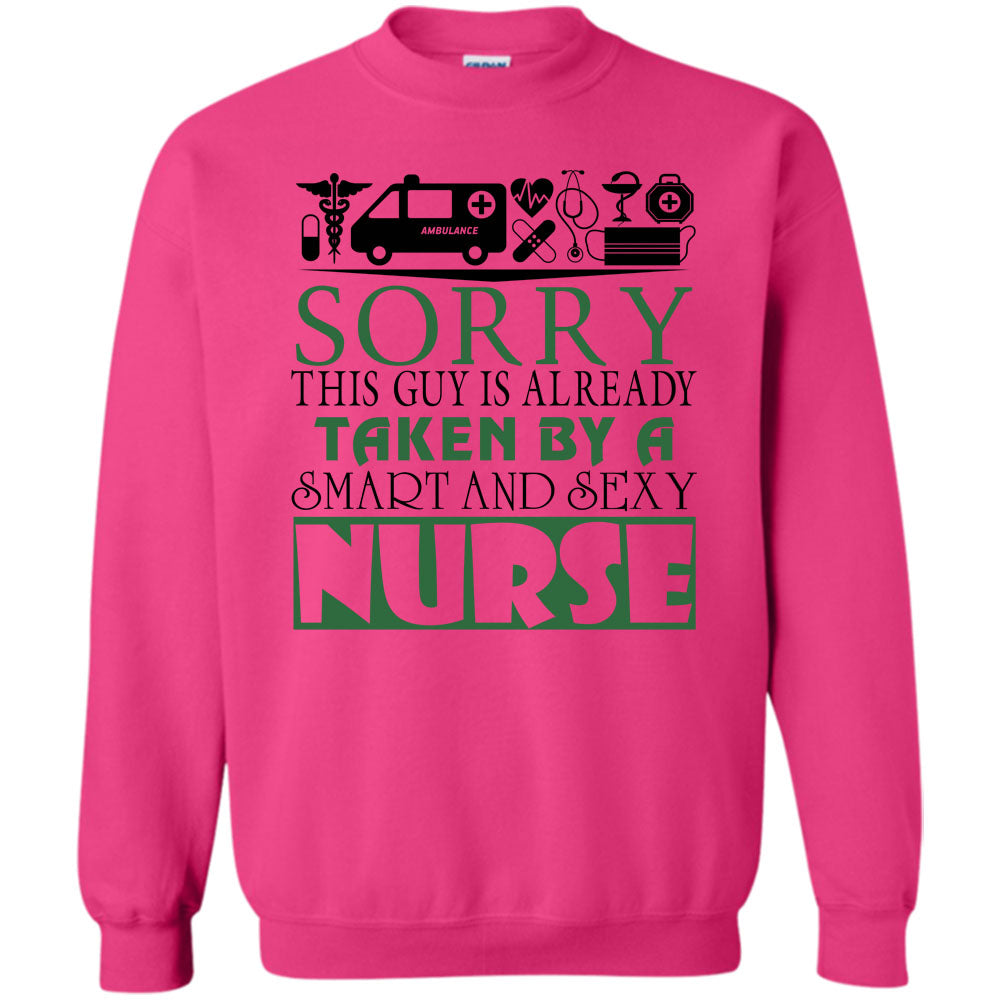 Nurse's Wife T Shirt, Sorry This Guy Is Already Taken By A Smart & Sexy Nurse Sweatshirt