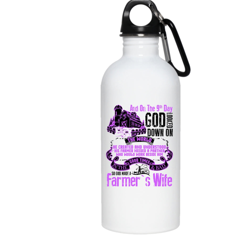 On The 9th Day God Made A Farmer's Wife 20 oz Stainless Steel Bottle,Funny Farmer's Wife Outdoor Sports Water Bottle