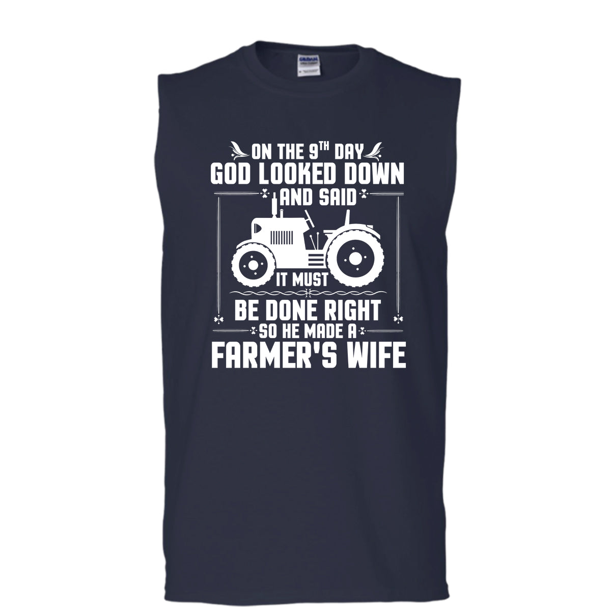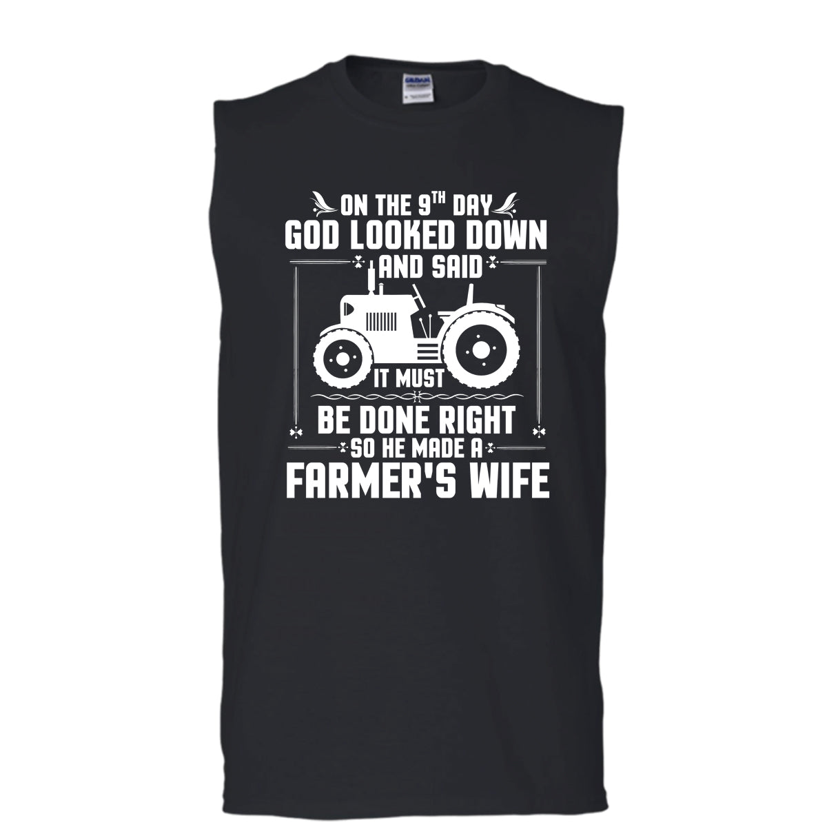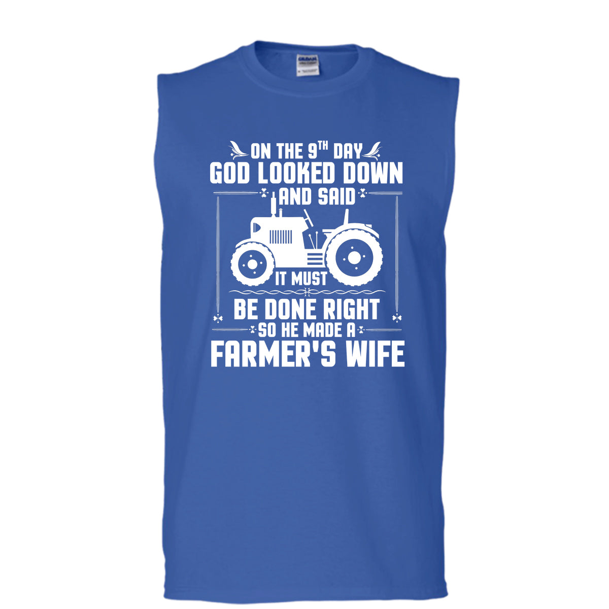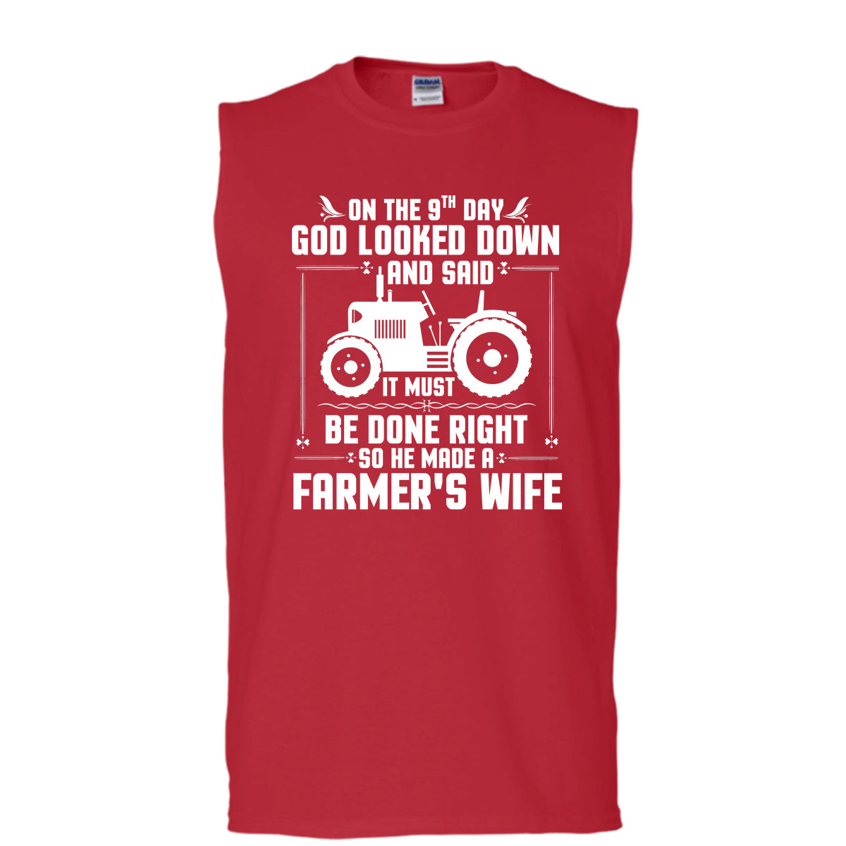 On The 9Th Day T Shirt, God Made A Farmer's Wife T Shirt, Cool T Shirt (Men's Cotton Sleeveless)
