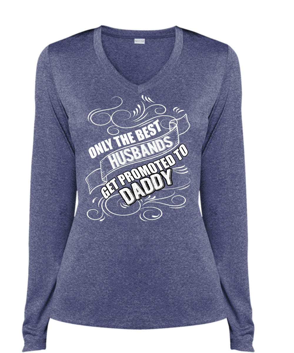 Only The Best Husbands T Shirt, Get Promoted To Daddy T Shirt, Cool Shirt (Ladies LS Heather V-Neck)
