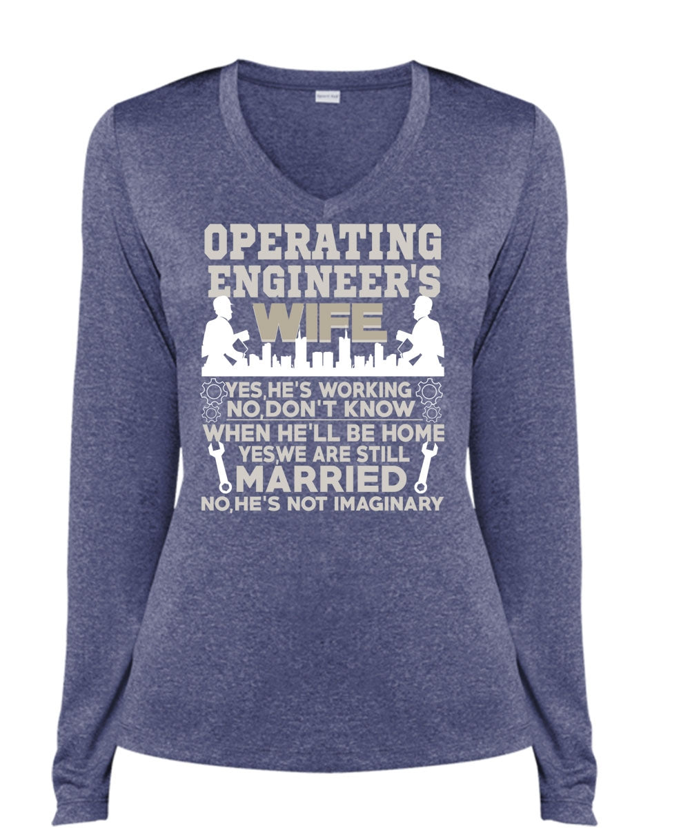 Operating Engineer's Wife T Shirt, We Are Still Married T Shirt, Cool Shirt (Ladies LS Heather V-Neck)