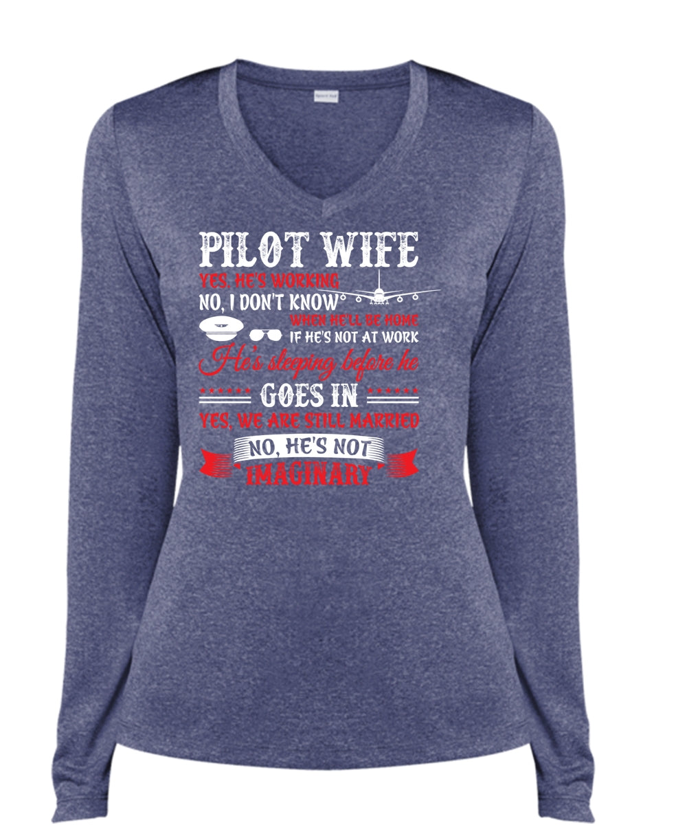 Pilot Wife T Shirt, We Are Still Married T Shirt, He's Not Imaginary T Shirt (Ladies LS Heather V-Neck)