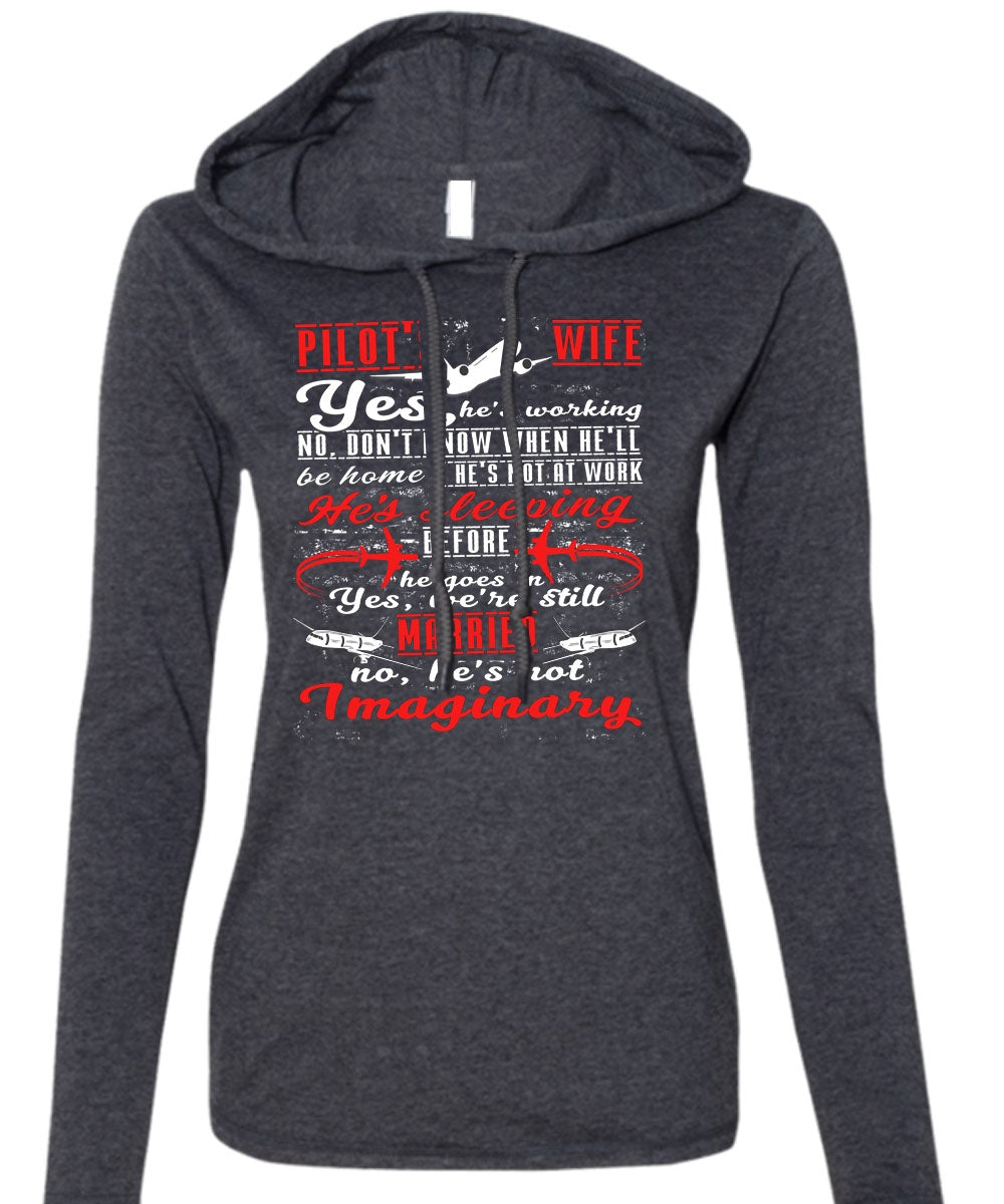 Pilot's Wife T Shirt, He's Not Imaginary T Shirt (Anvil Ladies Ringspun Hooded)