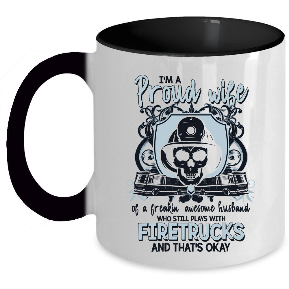 Play With Firetrucks Coffee Mug, I'm Proud Wife Of An Awesome Husband Accent Mug