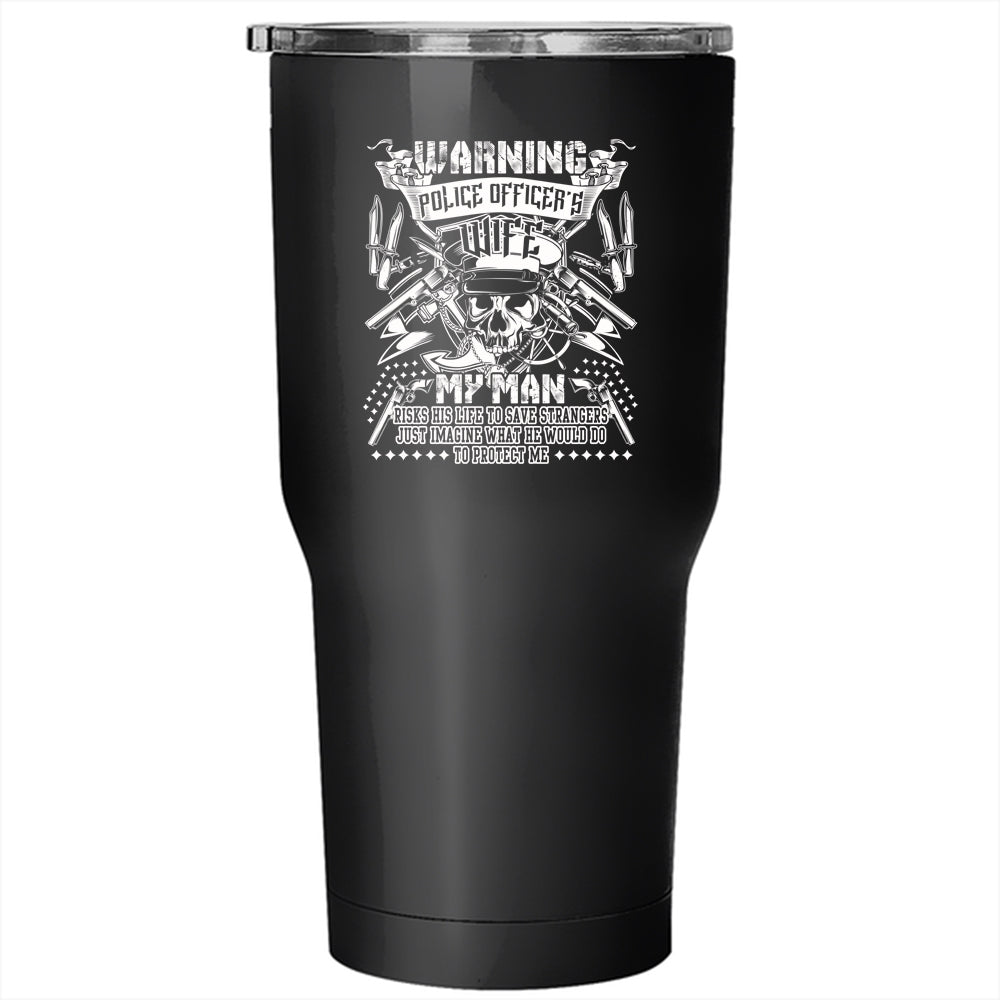Police Officer's Wife Tumbler 30 oz Stainless Steel, My Man Protect Me Travel Mug