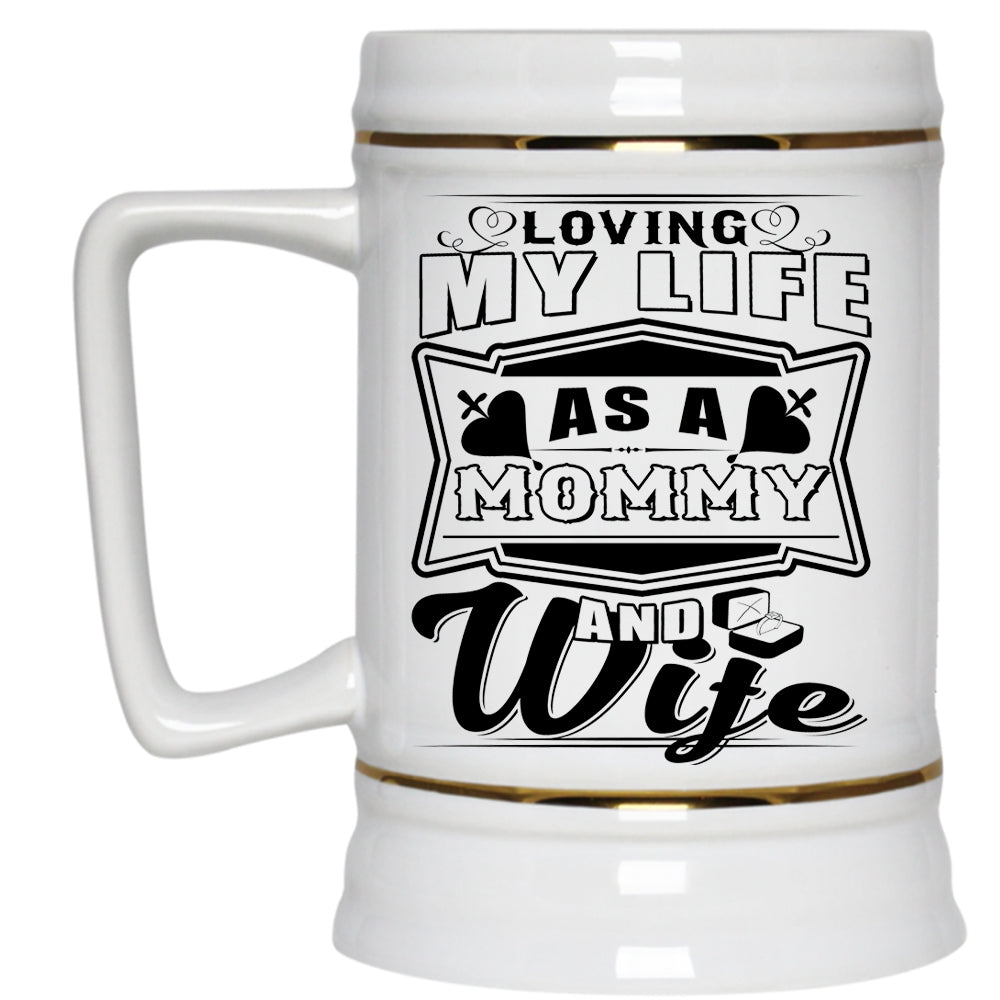 Pretty Girls Beer Stein 22oz, Loving My Life As A Mommy And Wife Beer Mug