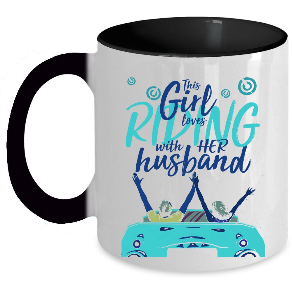 Pretty Girls Coffee Mug, This Girl Loves Riding With Her Husband Accent Mug