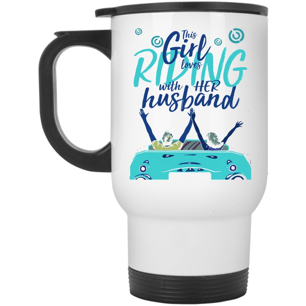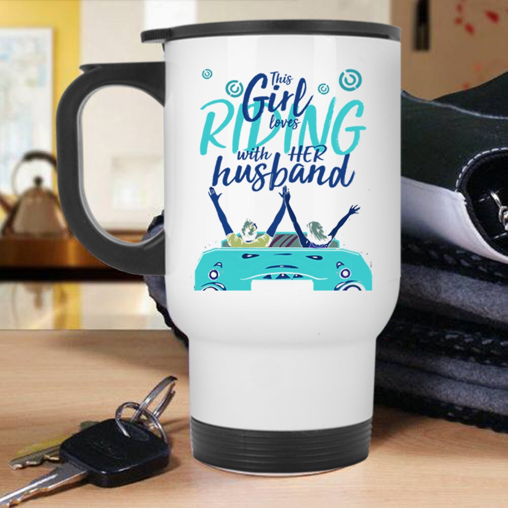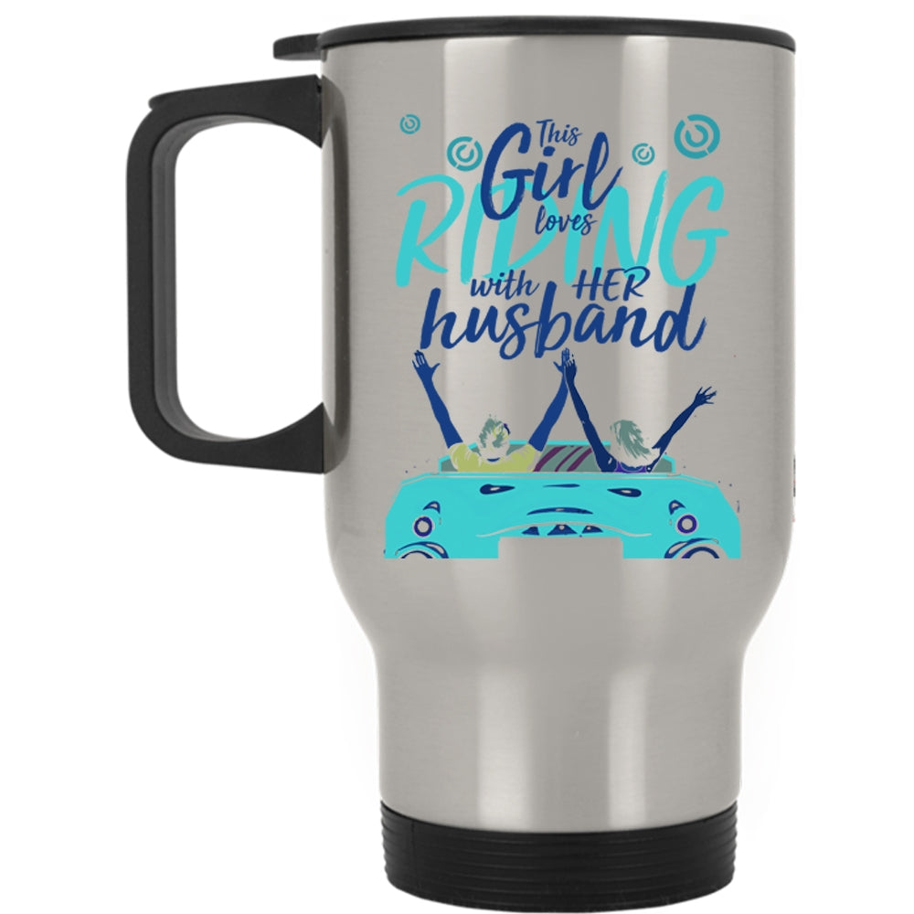 Pretty Girls Travel Mug, This Girl Loves Riding With Her Husband Mug