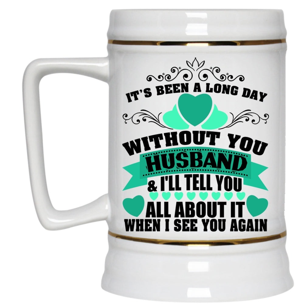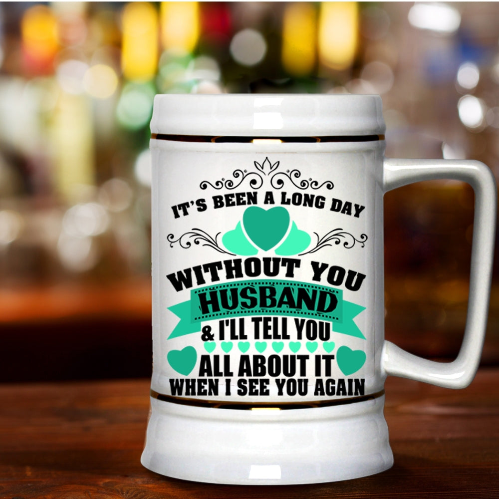 Pretty Wife Beer Stein 22oz, It's Been A Long Day Without Husband Beer Mug