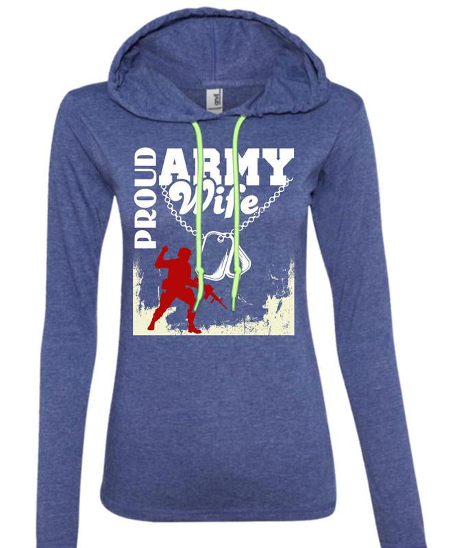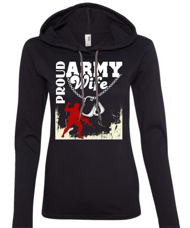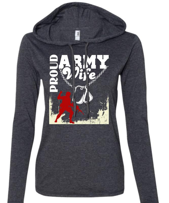Proud Army Wife T Shirt, Being A Veteran T Shirt (Anvil Ladies Ringspun Hooded)