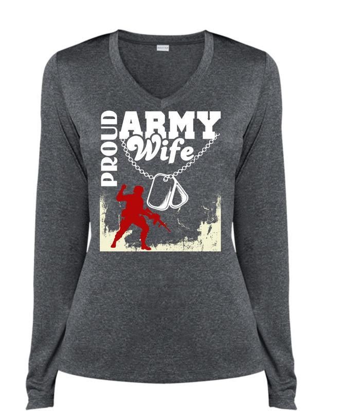 Proud Army Wife T Shirt, Being A Veteran T Shirt, Cool Shirt (Ladies LS Heather V-Neck)