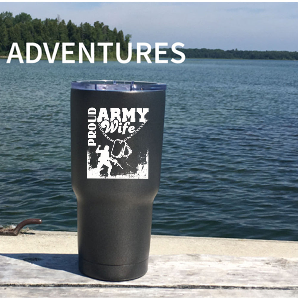 Proud Army Wife Tumbler 30 oz Stainless Steel, Beautiful Wife Travel Mug
