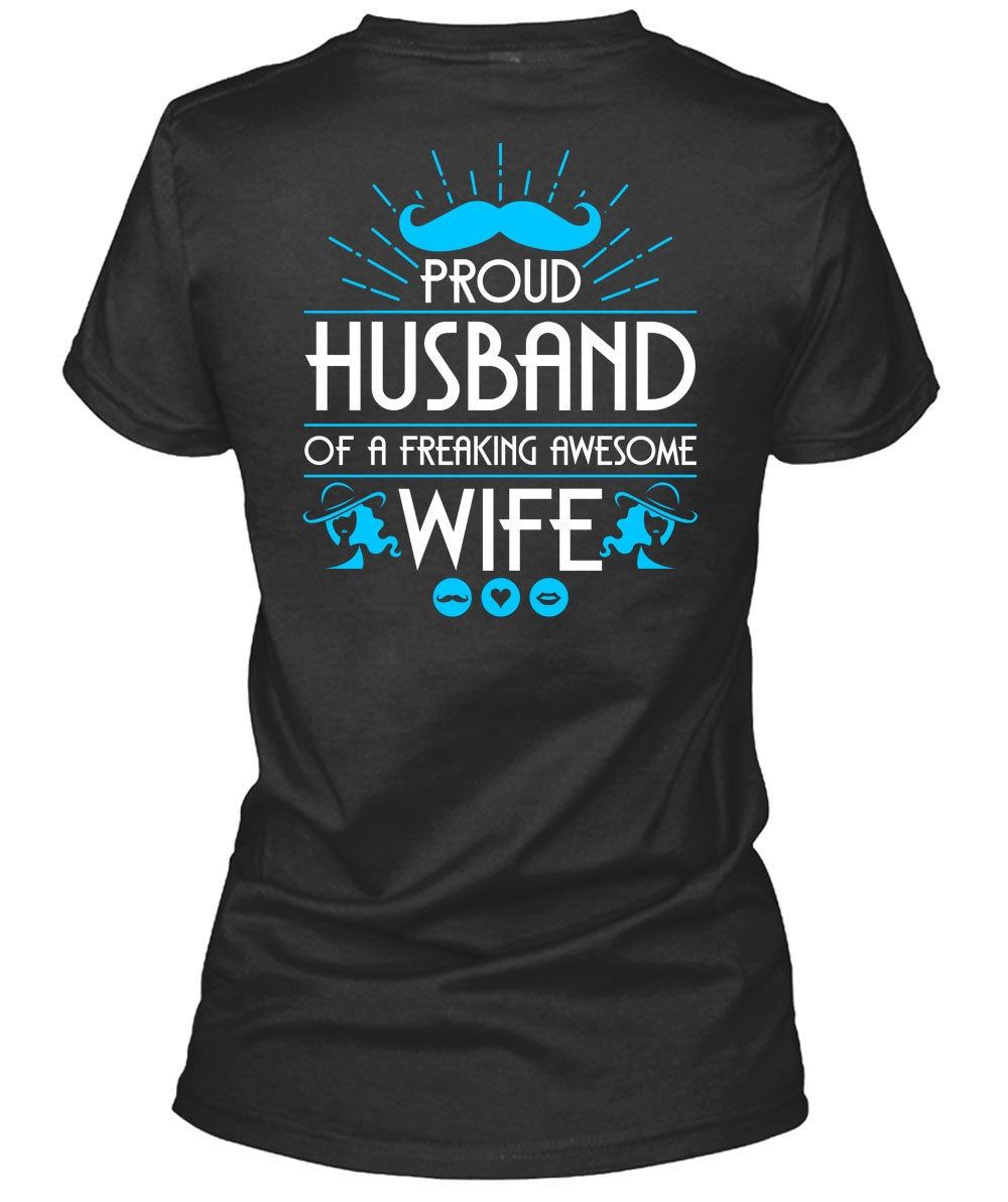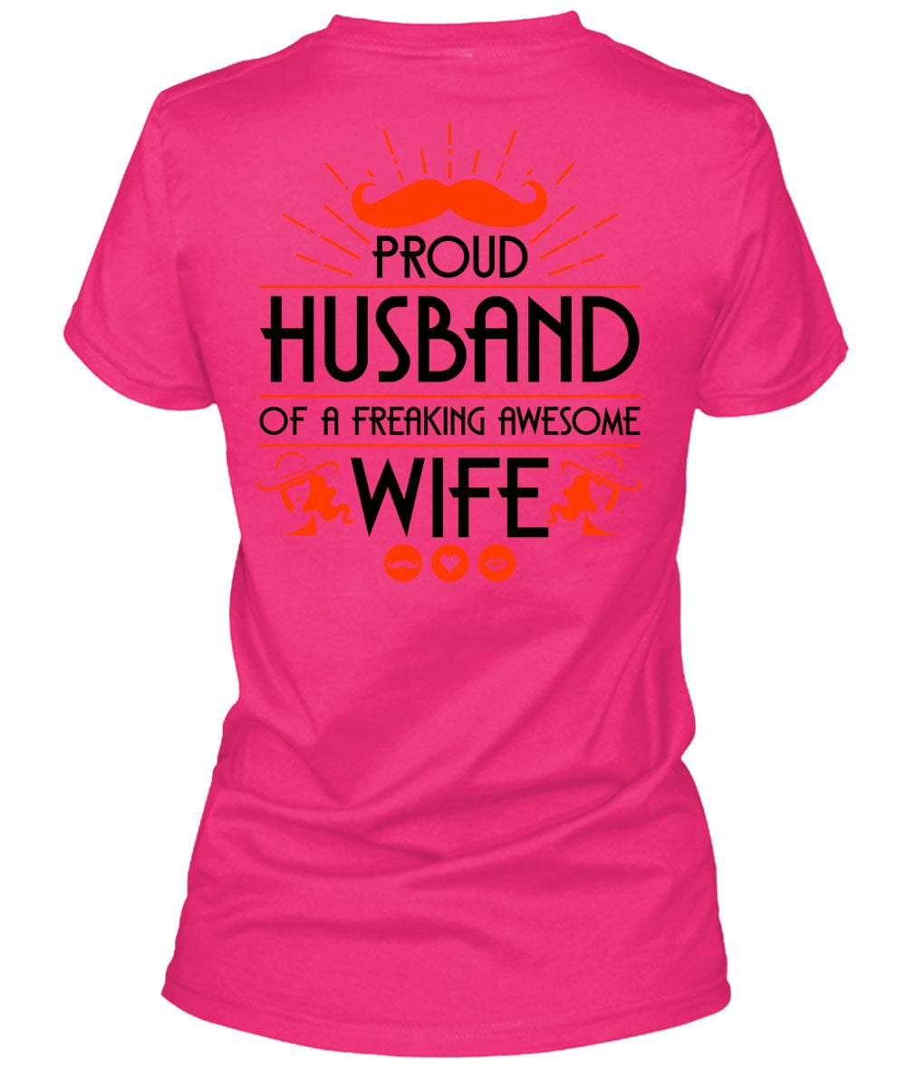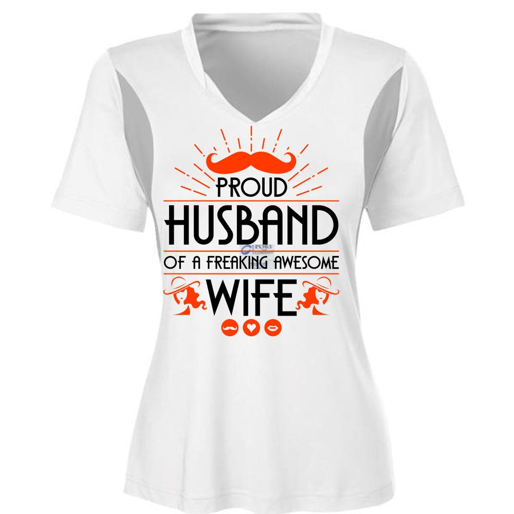 Proud Husband Of A Freaking Awesome Wife T Shirt, Being A Wife T Shirt, Cool Shirt (Ladies LS Heather V-Neck)