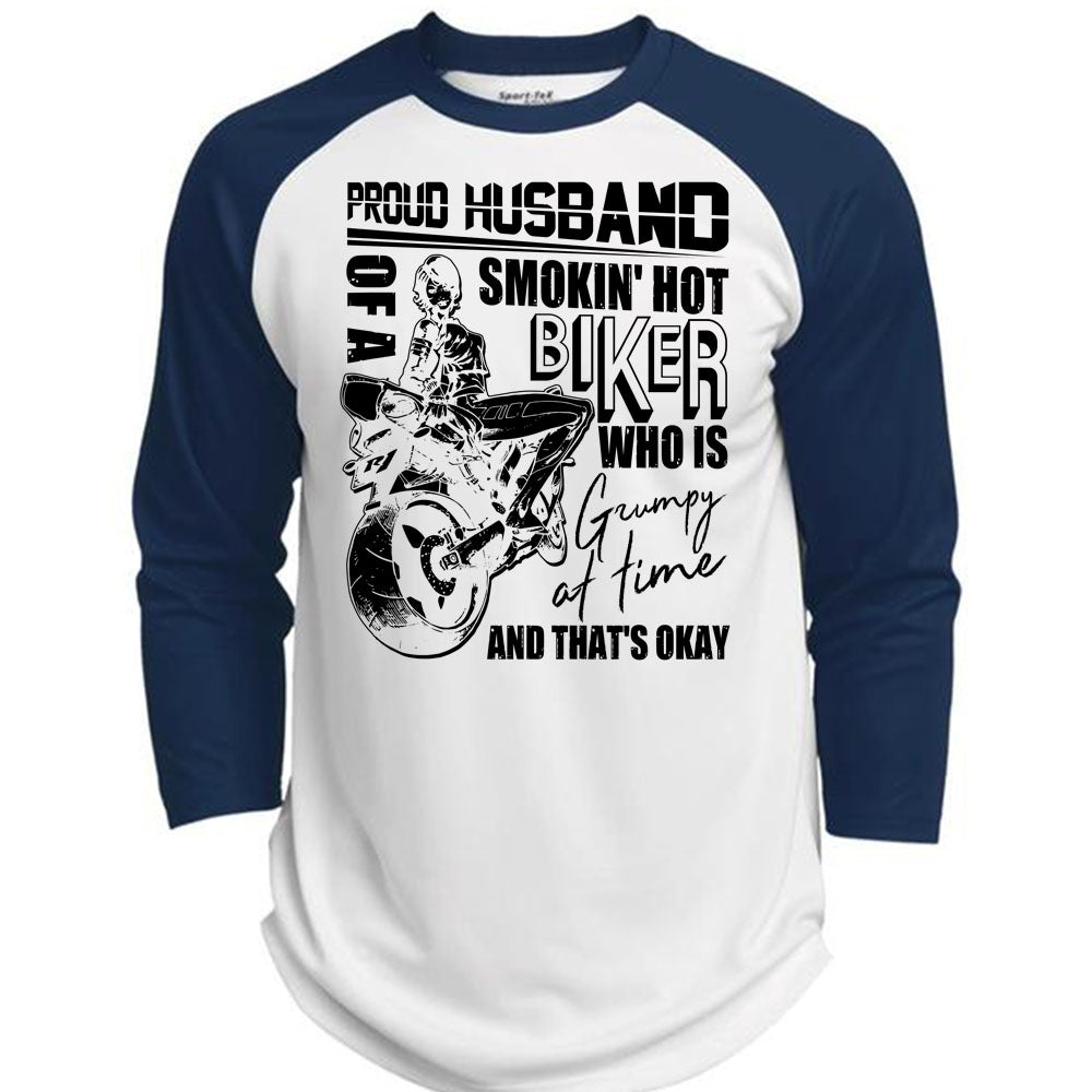 Proud Husband Of A Smoking Hot Biker T Shirt, I Love Biker T Shirt, Awesome T-Shirts (Polyester Game Baseball Jersey)
