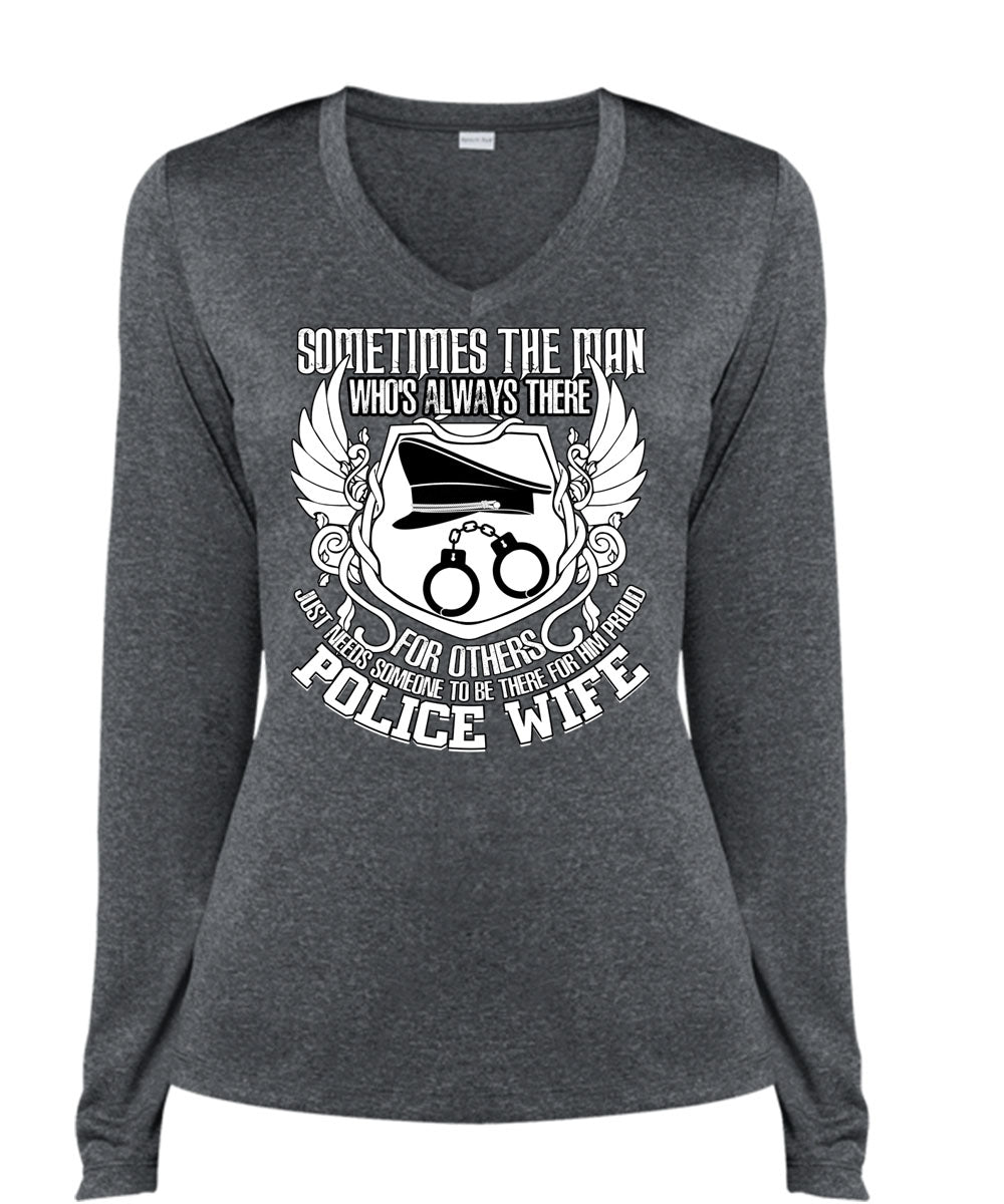 Proud Police Wife T Shirt, Being A Police T Shirt, Cool Shirt (Ladies LS Heather V-Neck)