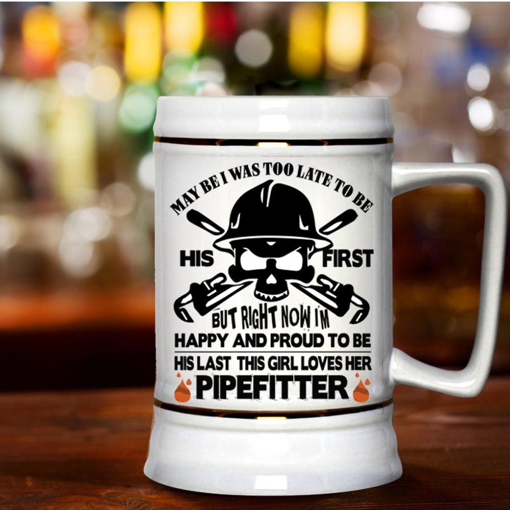 Proud To Be His Wife Beer Stein 22oz, This Girl Loves Her Pipefitter Beer Mug