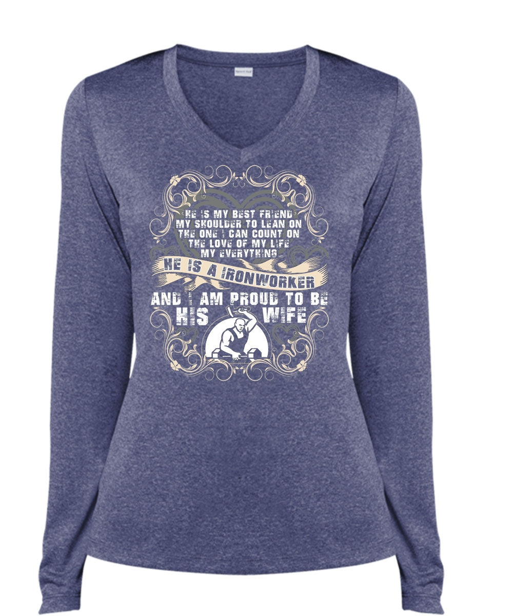 Proud To Be His Wife T Shirt, Being An Ironworker T Shirt, Cool Shirt (Ladies LS Heather V-Neck)