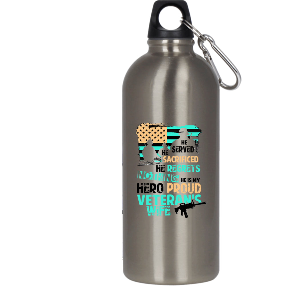 Proud Veteran's Wife 20 oz Stainless Steel Bottle,American Flag Outdoor Sports Water Bottle