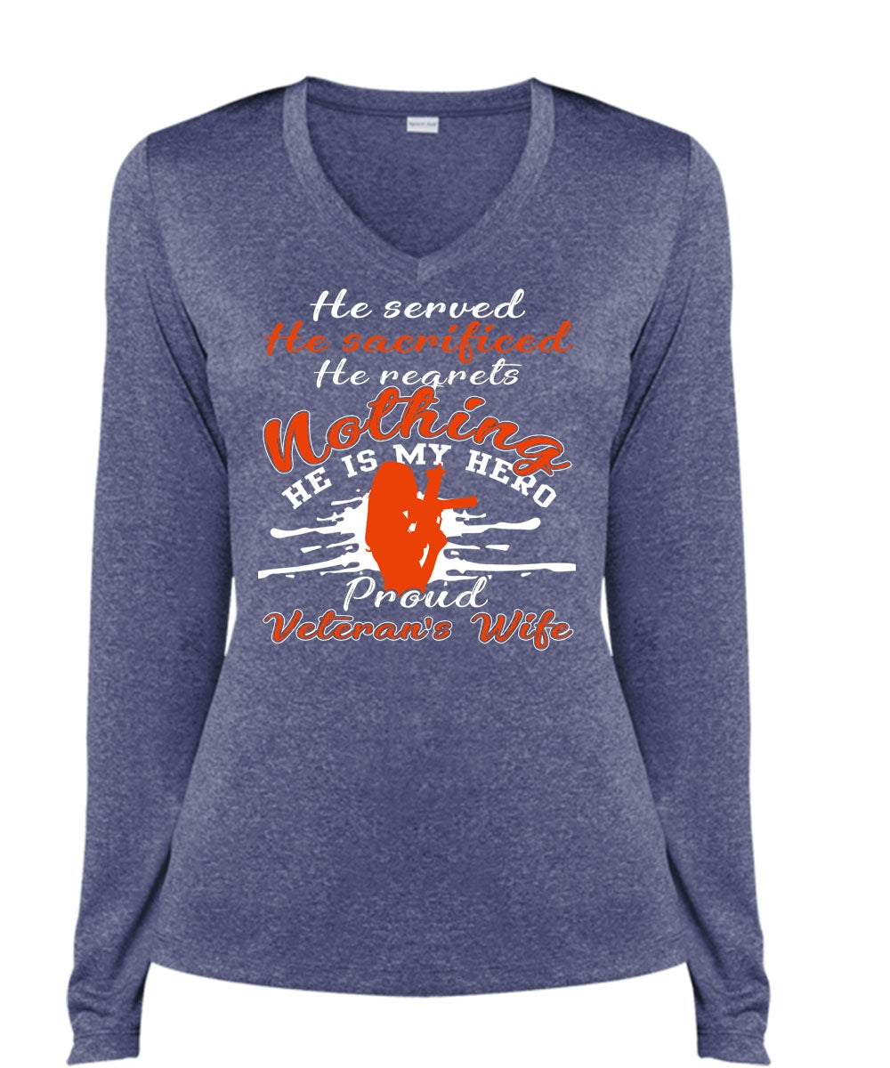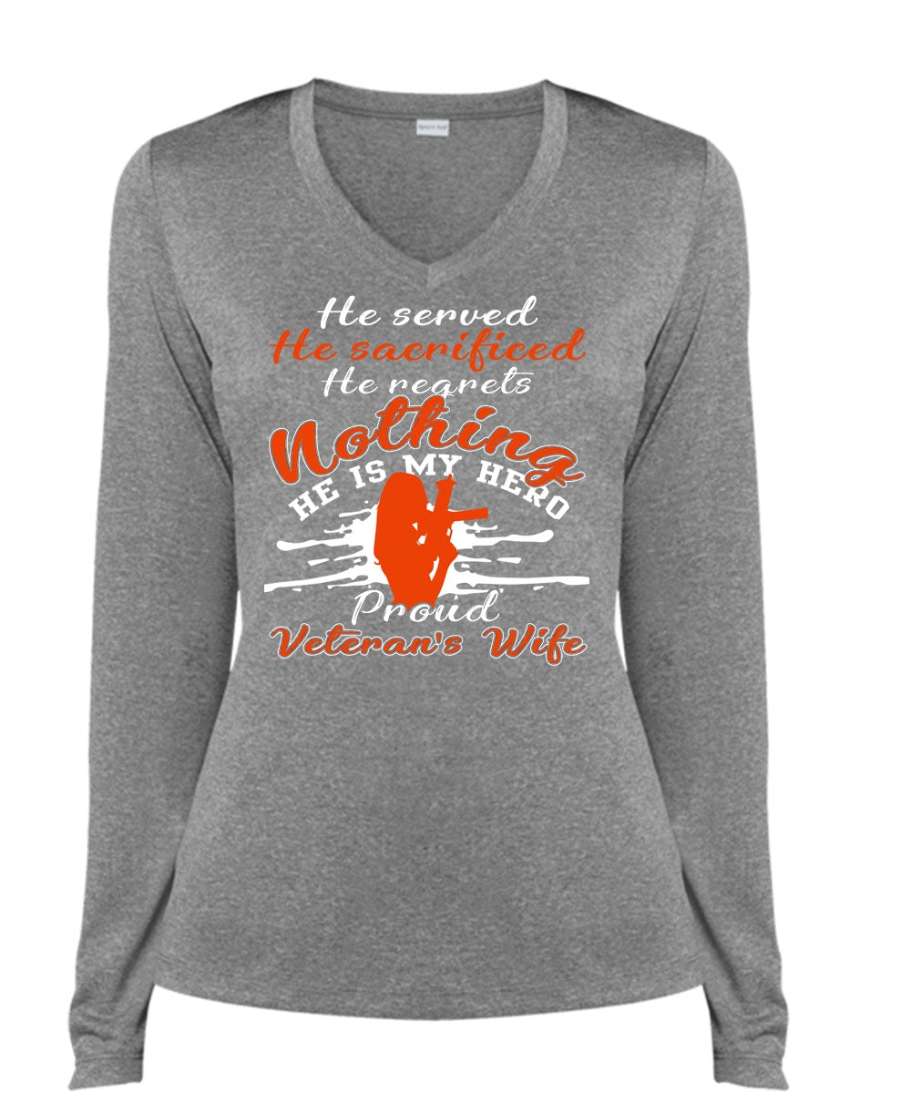 Proud Veteran's Wife T Shirt, Being A Veteran T Shirt, Cool Shirt (Ladies LS Heather V-Neck)