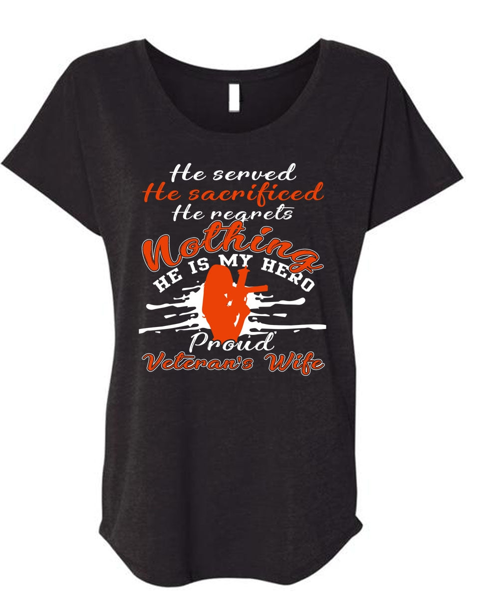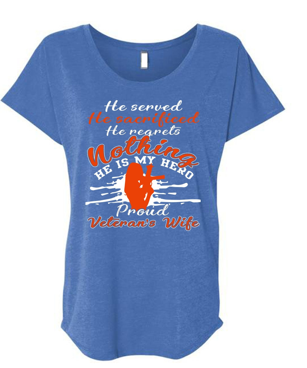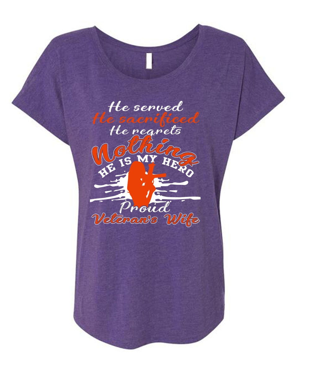 Proud Veteran's Wife T Shirt, Being A Veteran T Shirt, Cool Shirt (Ladies' Triblend Dolman Sleeve)
