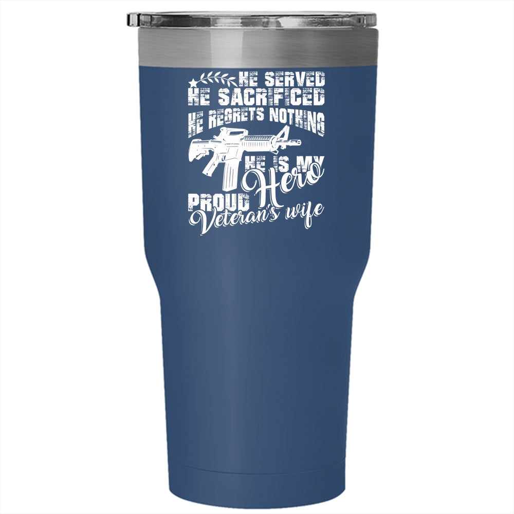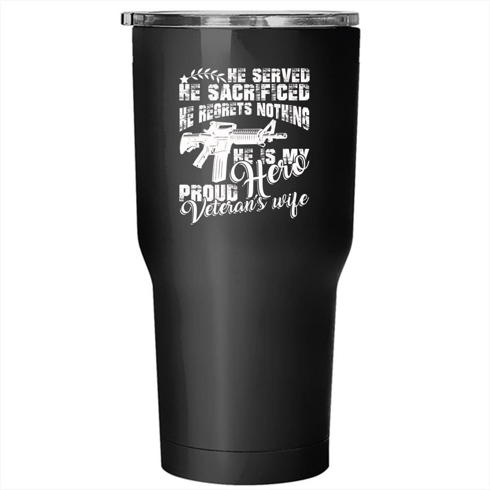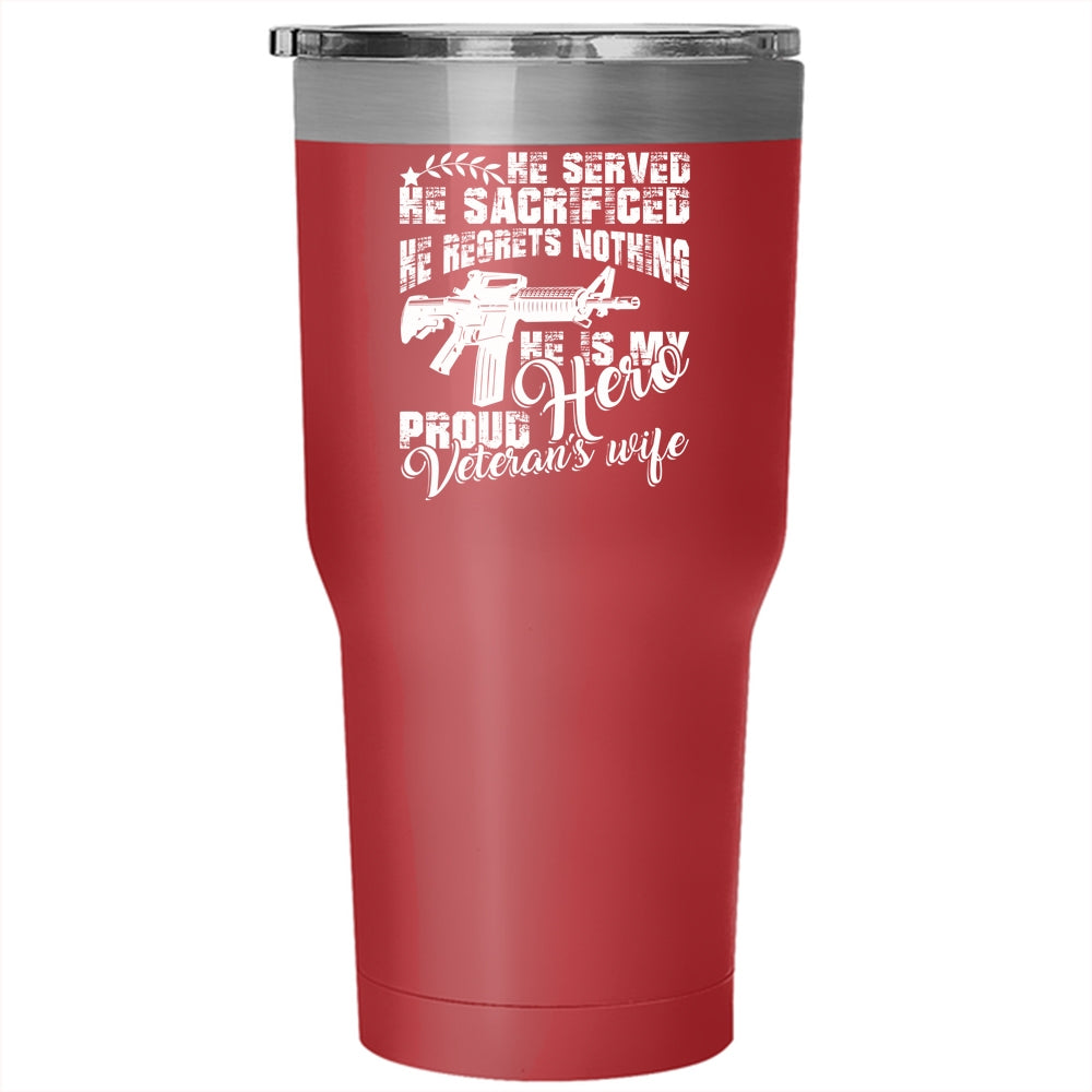 Proud Veteran's Wife Tumbler 30 oz Stainless Steel, Cool Just Married Travel Mug