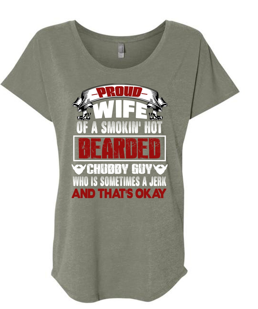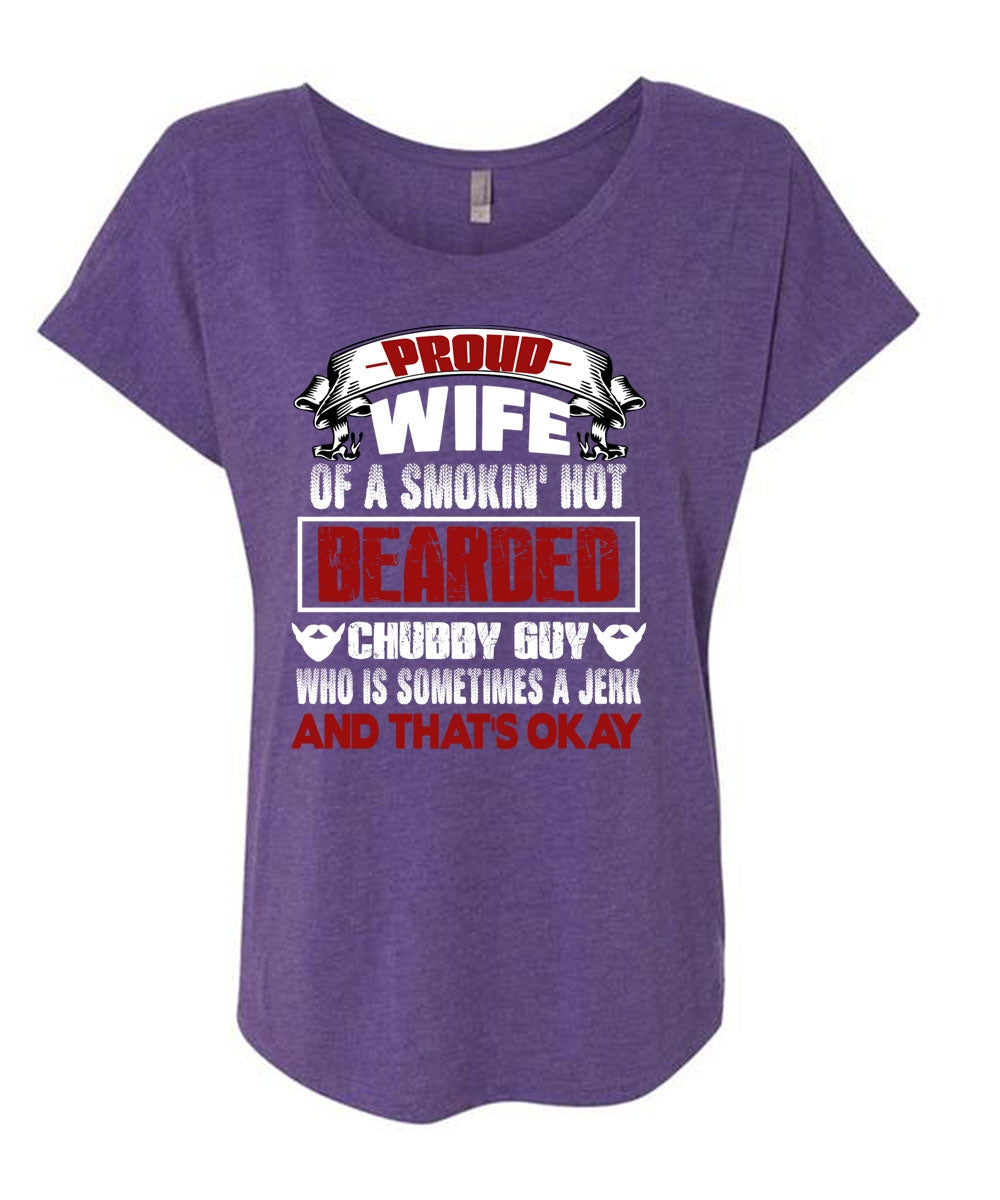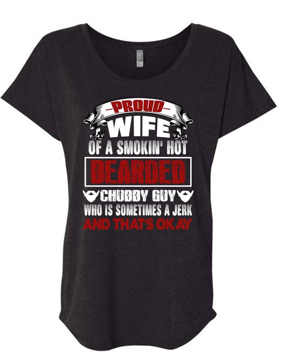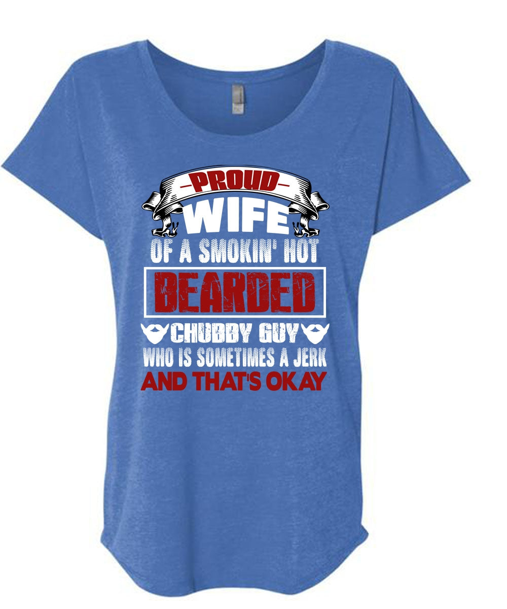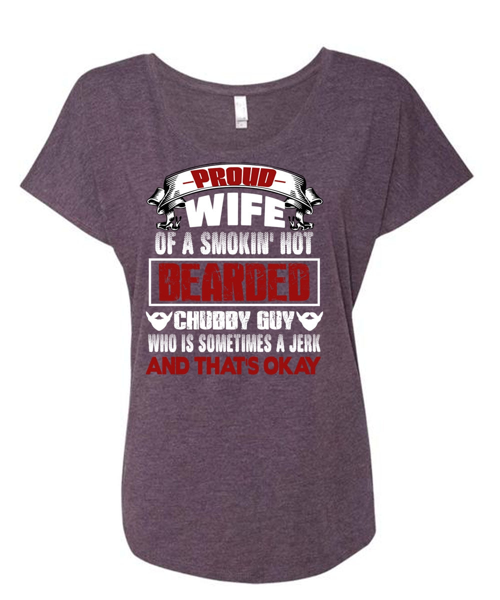 Proud Wife Of A Bearded Chubby Guy T Shirt, Being A Wife T Shirt, Cool Shirt (Ladies' Triblend Dolman Sleeve)