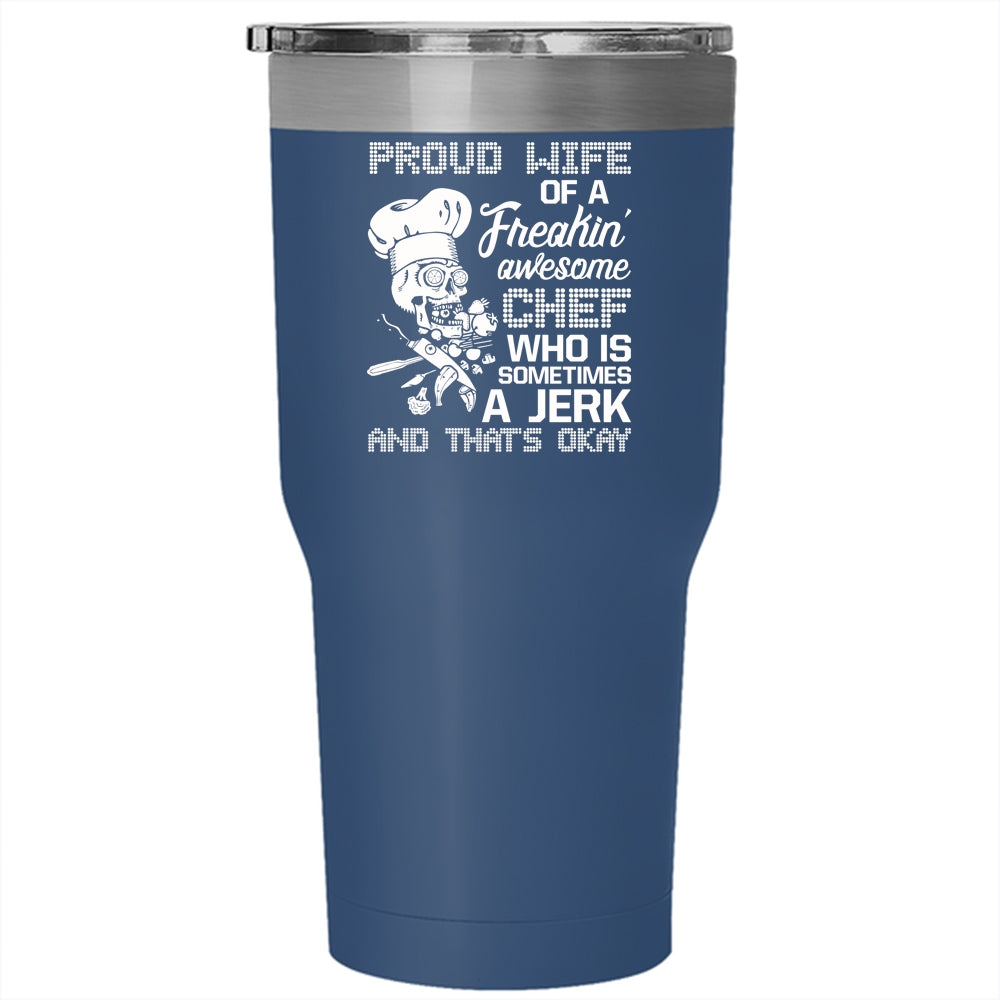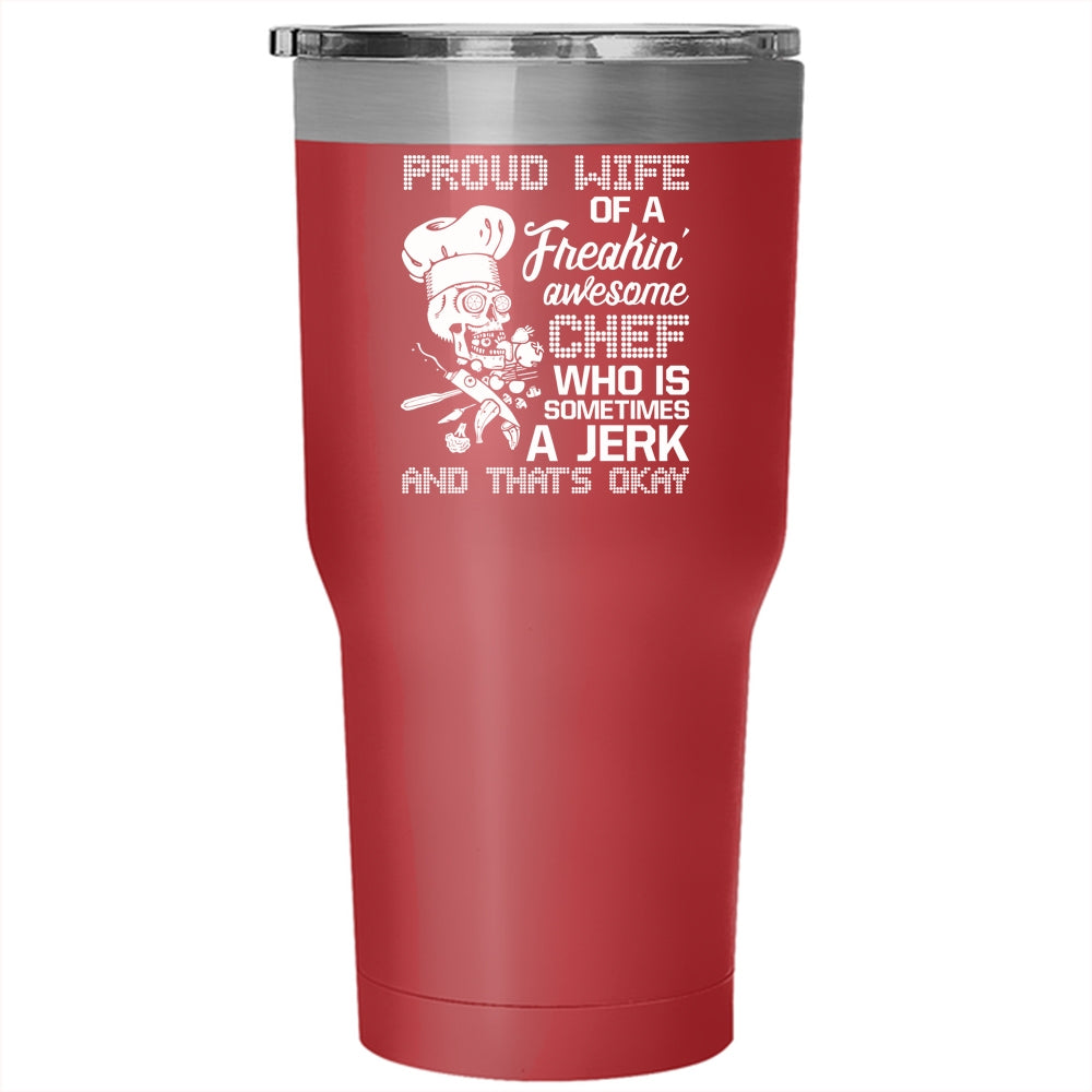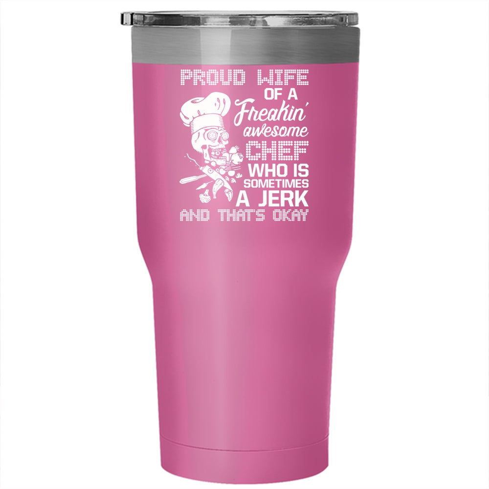 Proud Wife Of A Freaking Awesome Chef Tumbler 30 oz Stainless Steel, Cool Wife Travel Mug