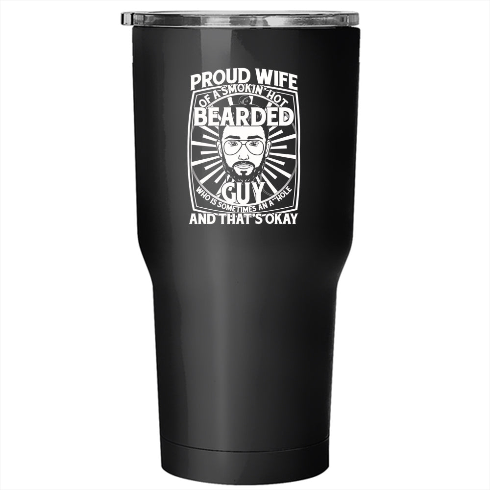 Proud Wife Of A Hot Bearded Chubby Guy Tumbler 30 oz Stainless Steel, Cool Bearded Chubby Guy Travel Mug