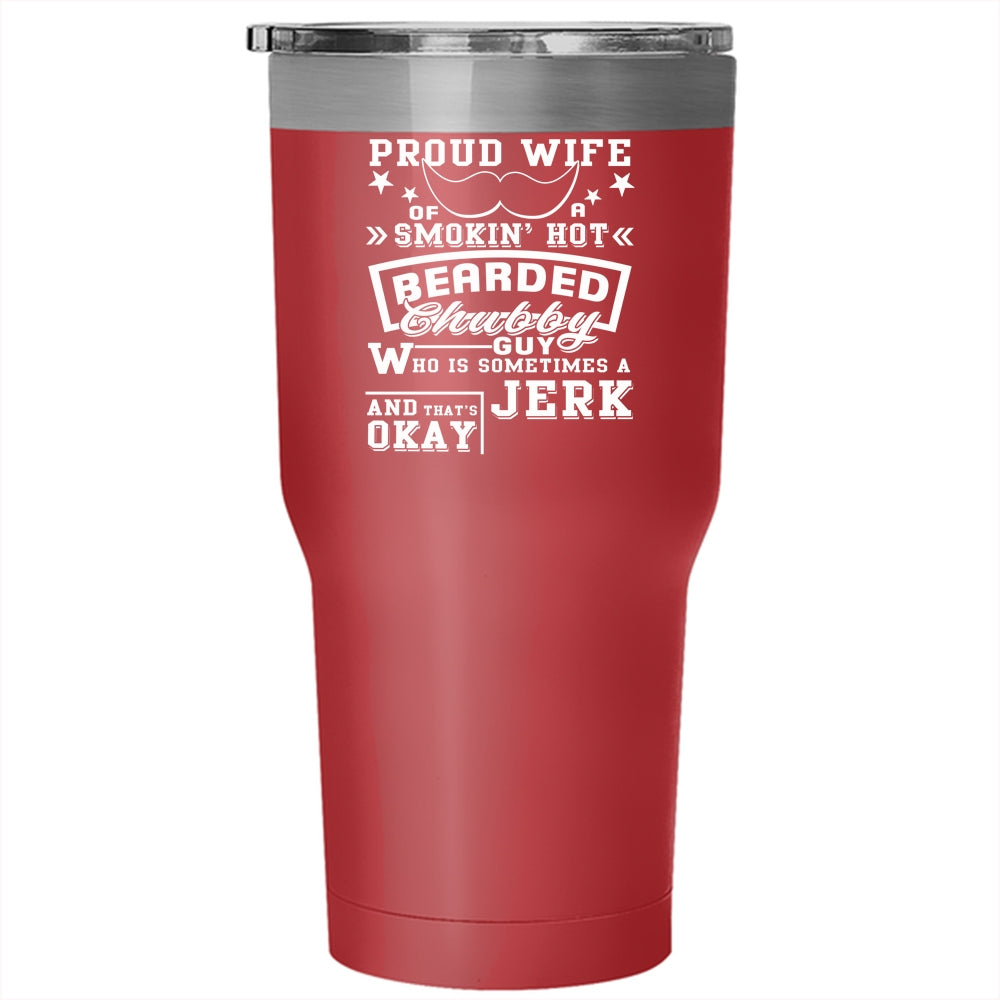 Proud Wife Of A Hot Bearded Chubby Guy Tumbler 30 oz Stainless Steel, Marry Travel Mug