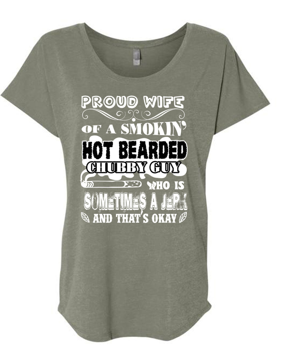 Proud Wife Of A Smoking Hot Bearded Chubby Guy T Shirt, Who Is Sometimes A Jerk And That's Okay T Shirt, Cool Shirt (Ladies' Triblend Dolman Sleeve)