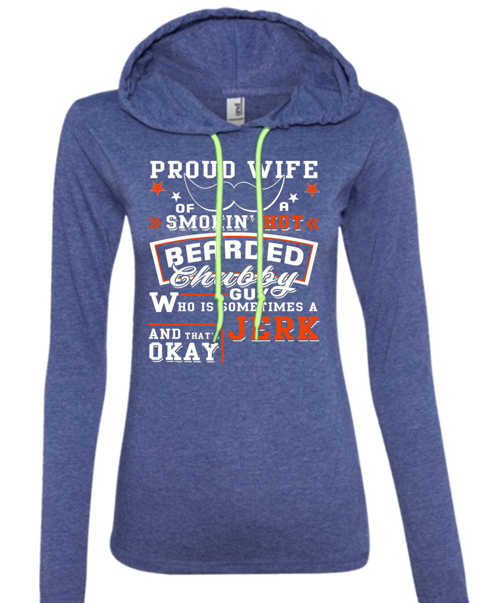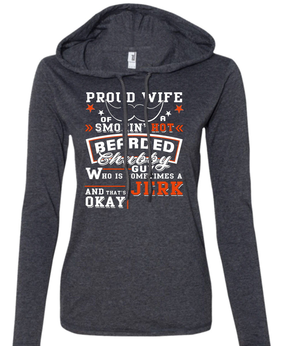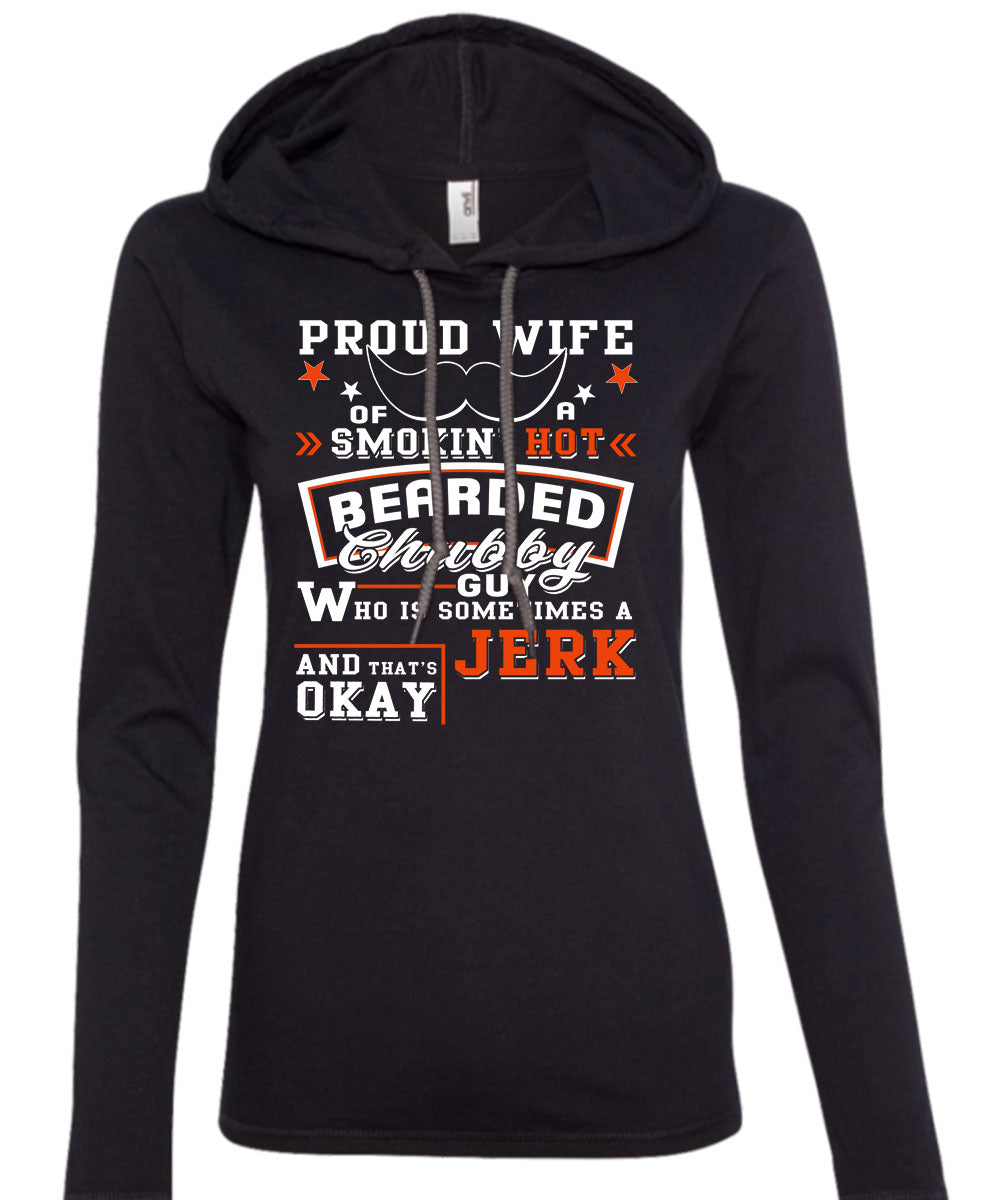 Proud Wife Of A Smoking Hot Bearded Chubby Guy T Shirt, Who Is Sometimes A Jerk T Shirt (Anvil Ladies Ringspun Hooded)