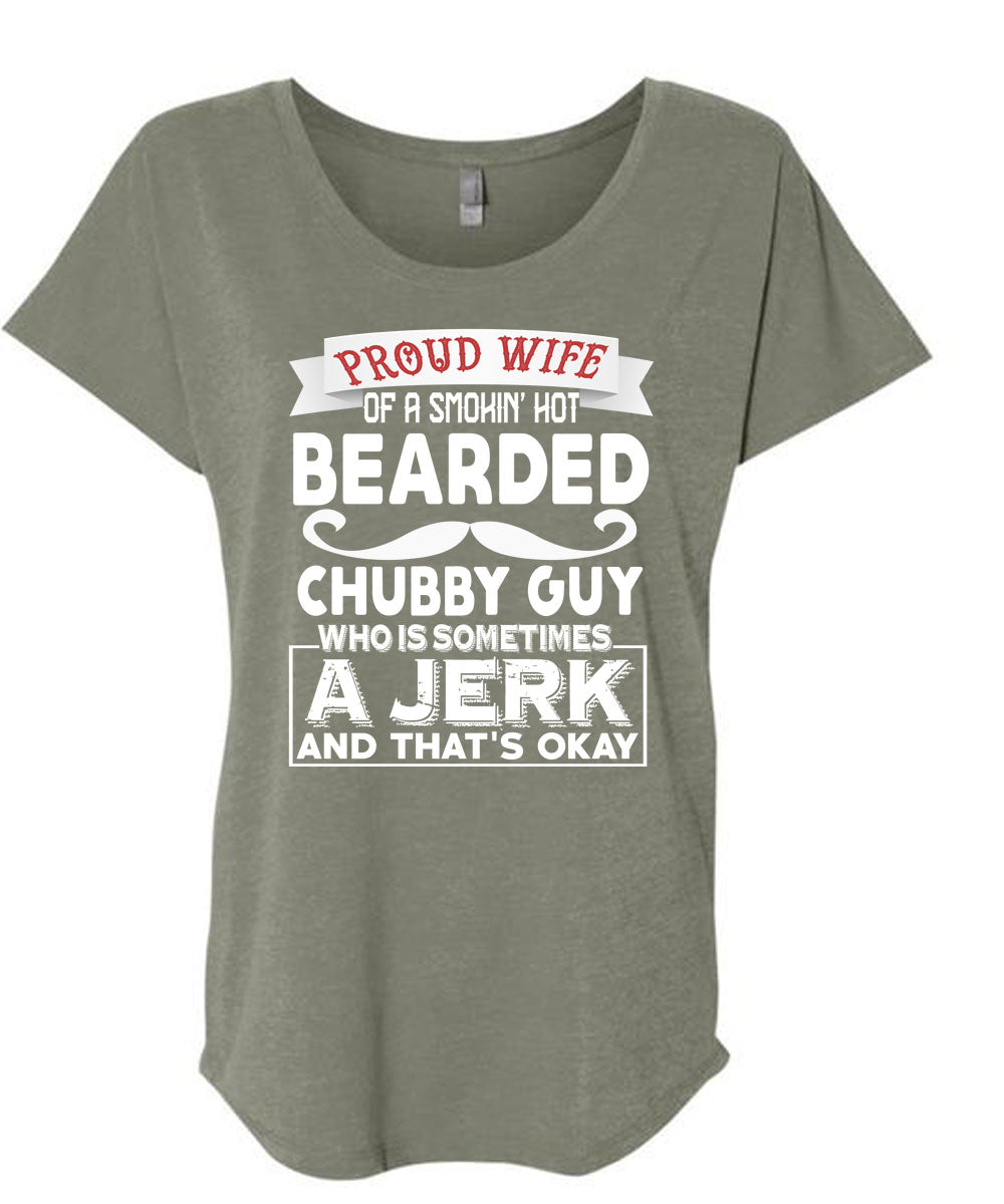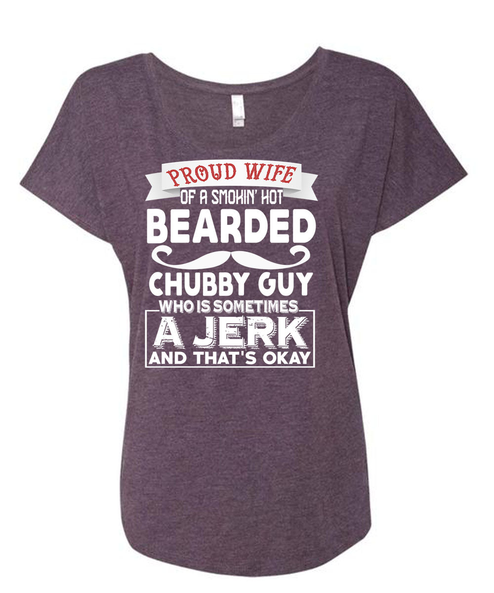 Proud Wife Of A Smoking Hot Bearded T Shirt, Chubby Guy Who Is Sometimes A Jerk T Shirt, Cool Shirt (Ladies' Triblend Dolman Sleeve)
