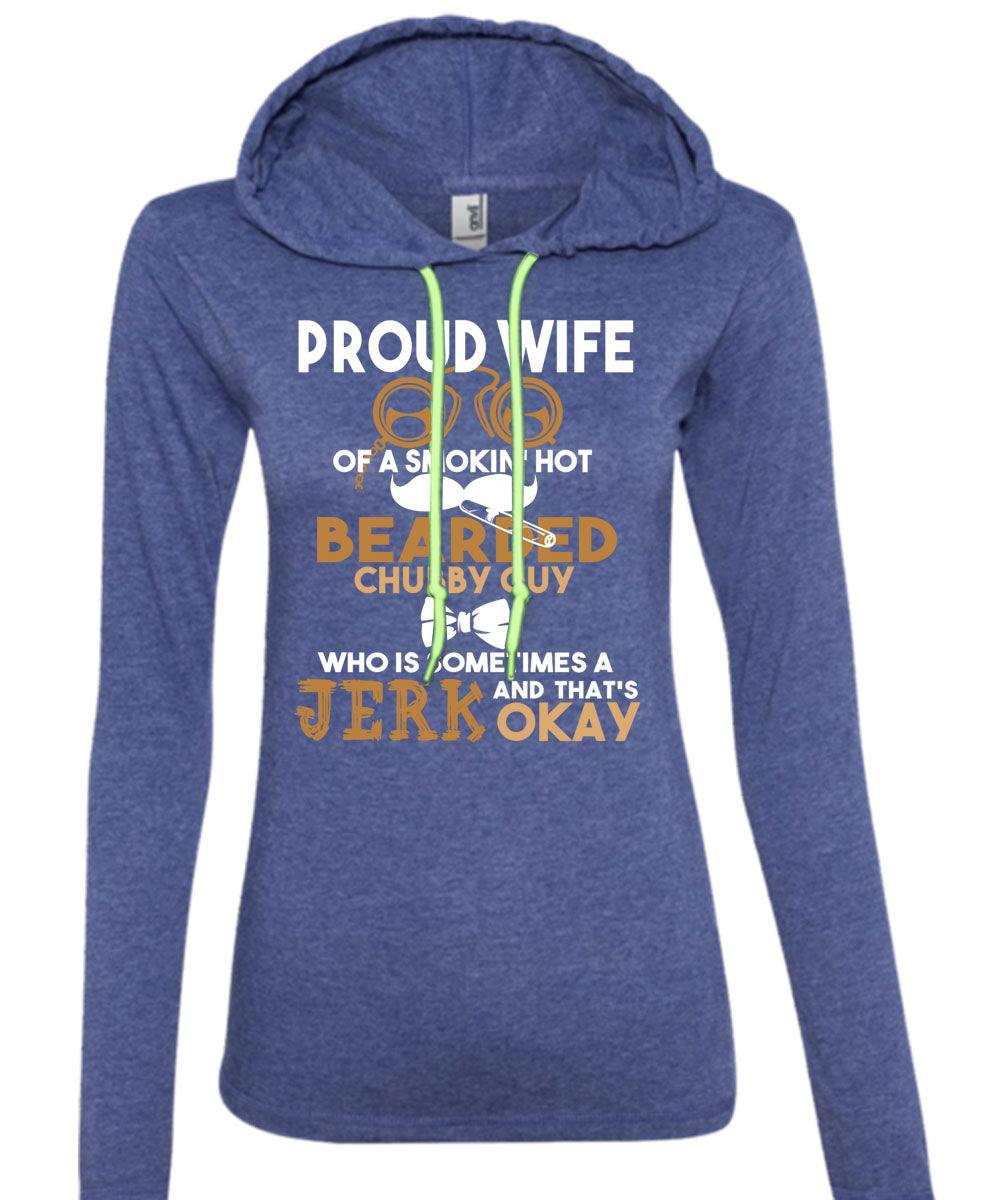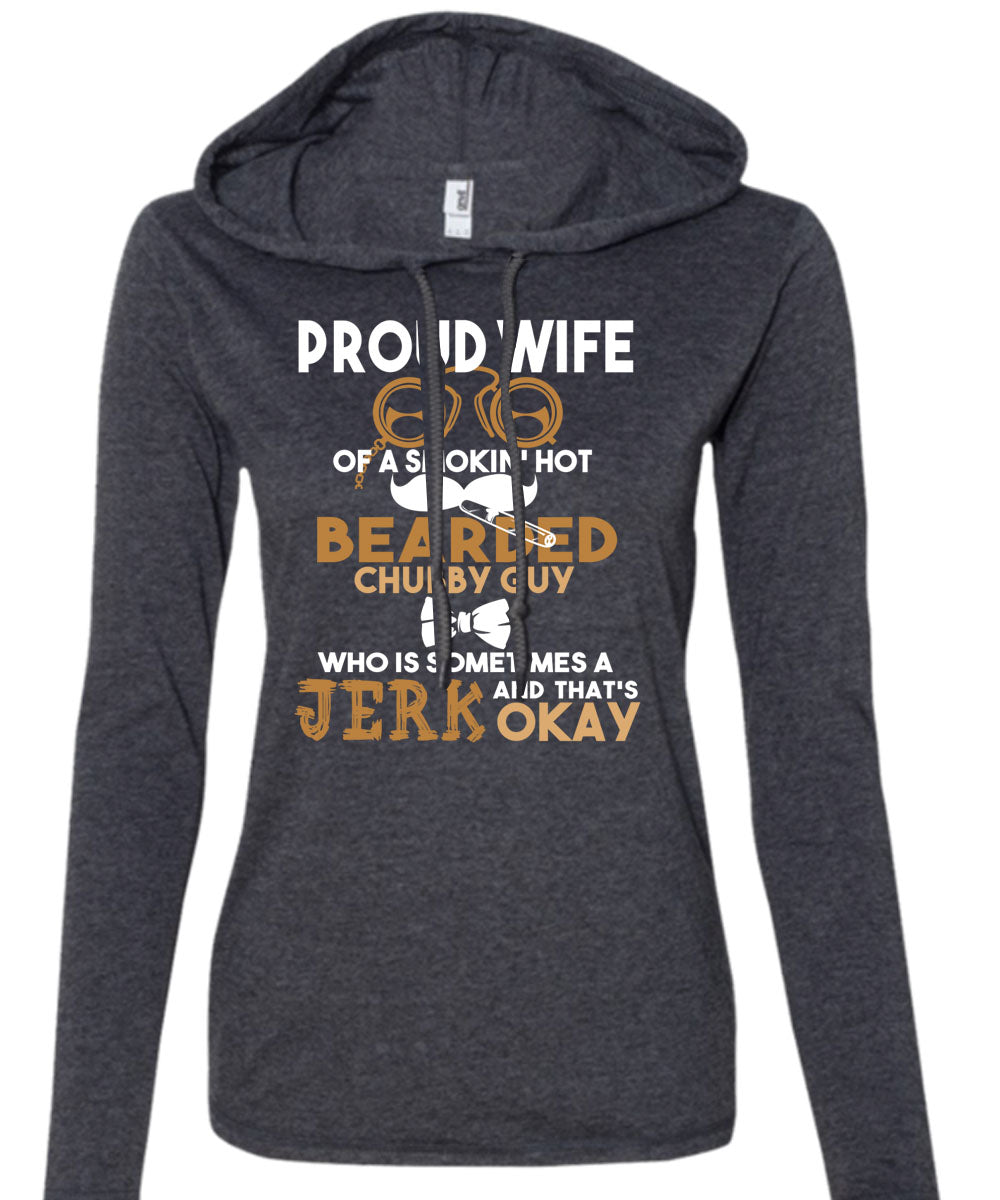 Proud Wife Of A Smoking Hot Bearded T Shirt, I Love My Wife T Shirt (Anvil Ladies Ringspun Hooded)