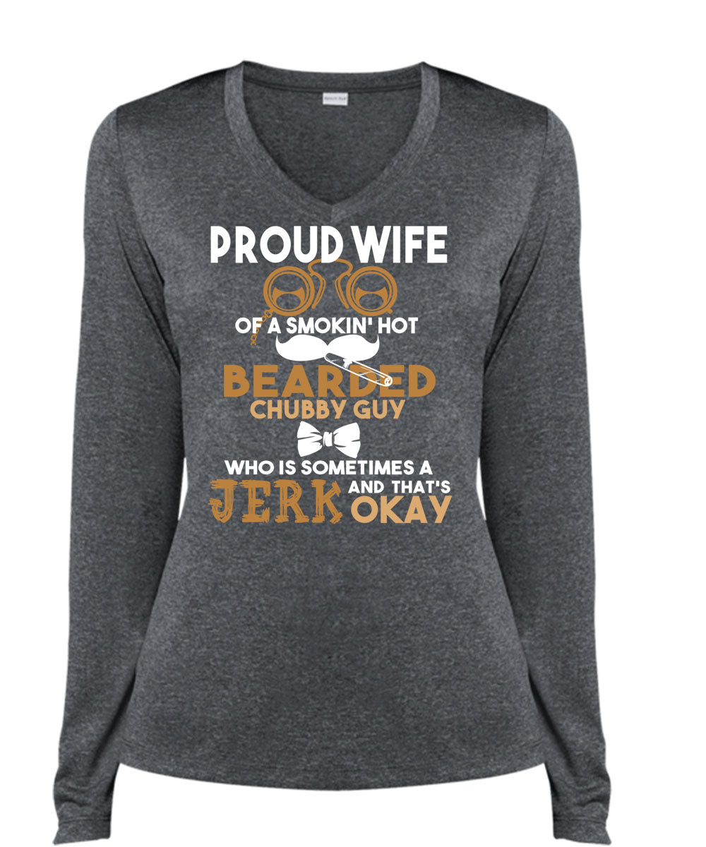 Proud Wife Of A Smoking Hot Bearded T Shirt, I Love My Wife T Shirt, Cool Shirt (Ladies LS Heather V-Neck)