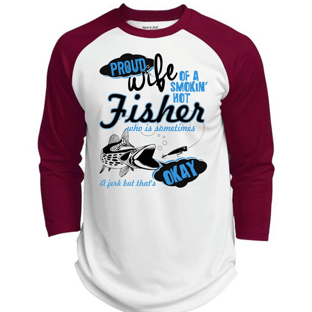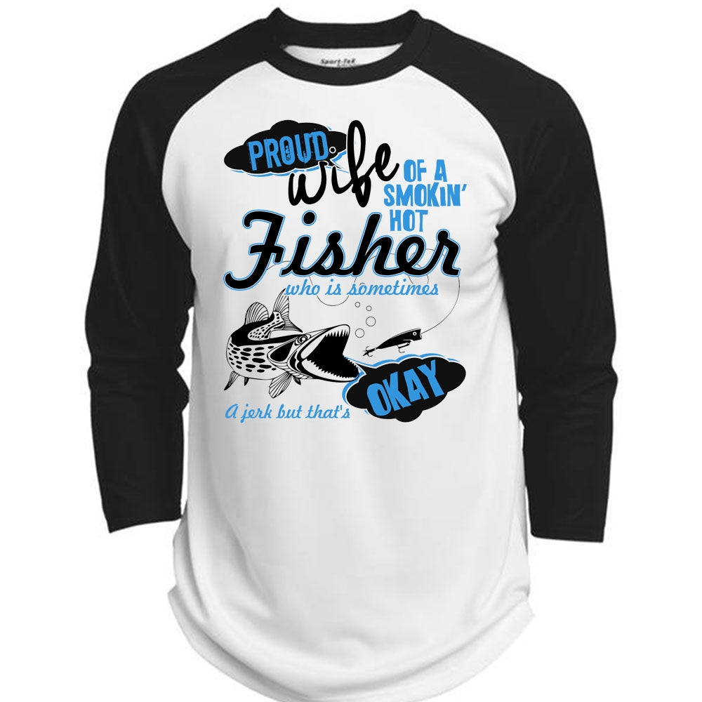Proud Wife Of A Smoking Hot Fisher T Shirt, I Love Fishing T Shirt, Awesome T-Shirts (Polyester Game Baseball Jersey)