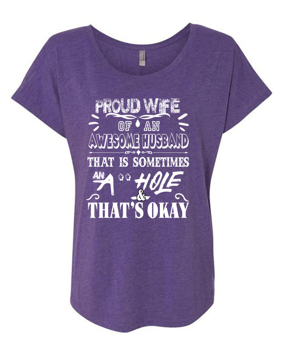 Proud Wife Of An Awesome Husband T Shirt, I Love Husband T Shirt, Cool Shirt (Ladies' Triblend Dolman Sleeve)