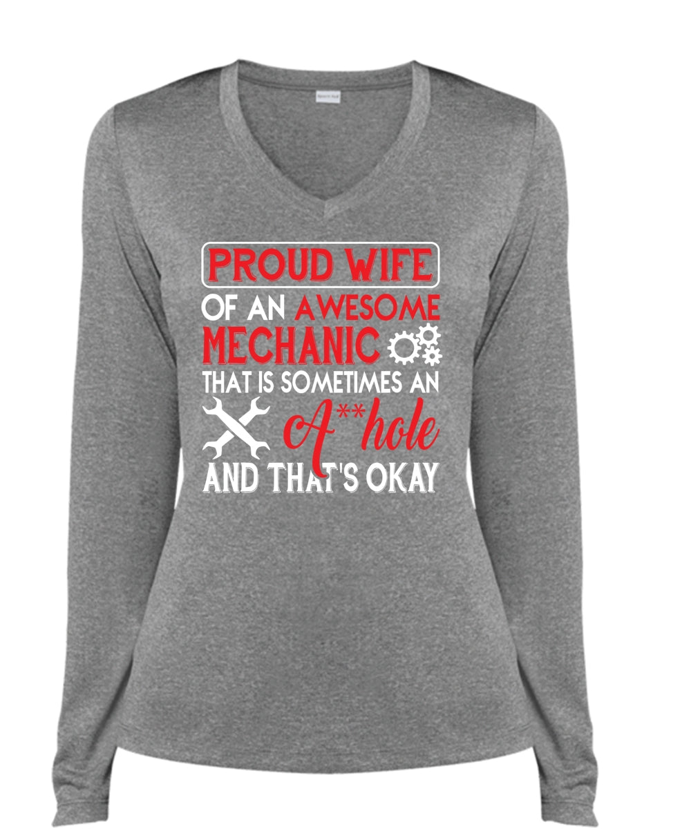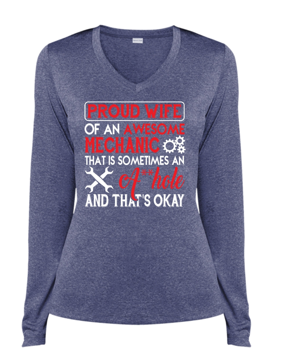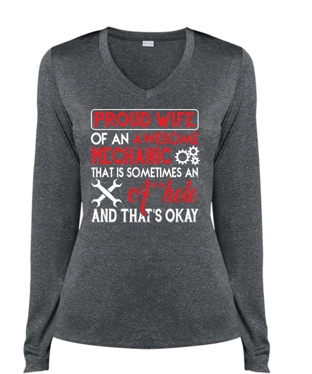 Proud Wife Of An Awesome Mechanic T Shirt, Job T Shirt (Ladies LS Heather V-Neck)