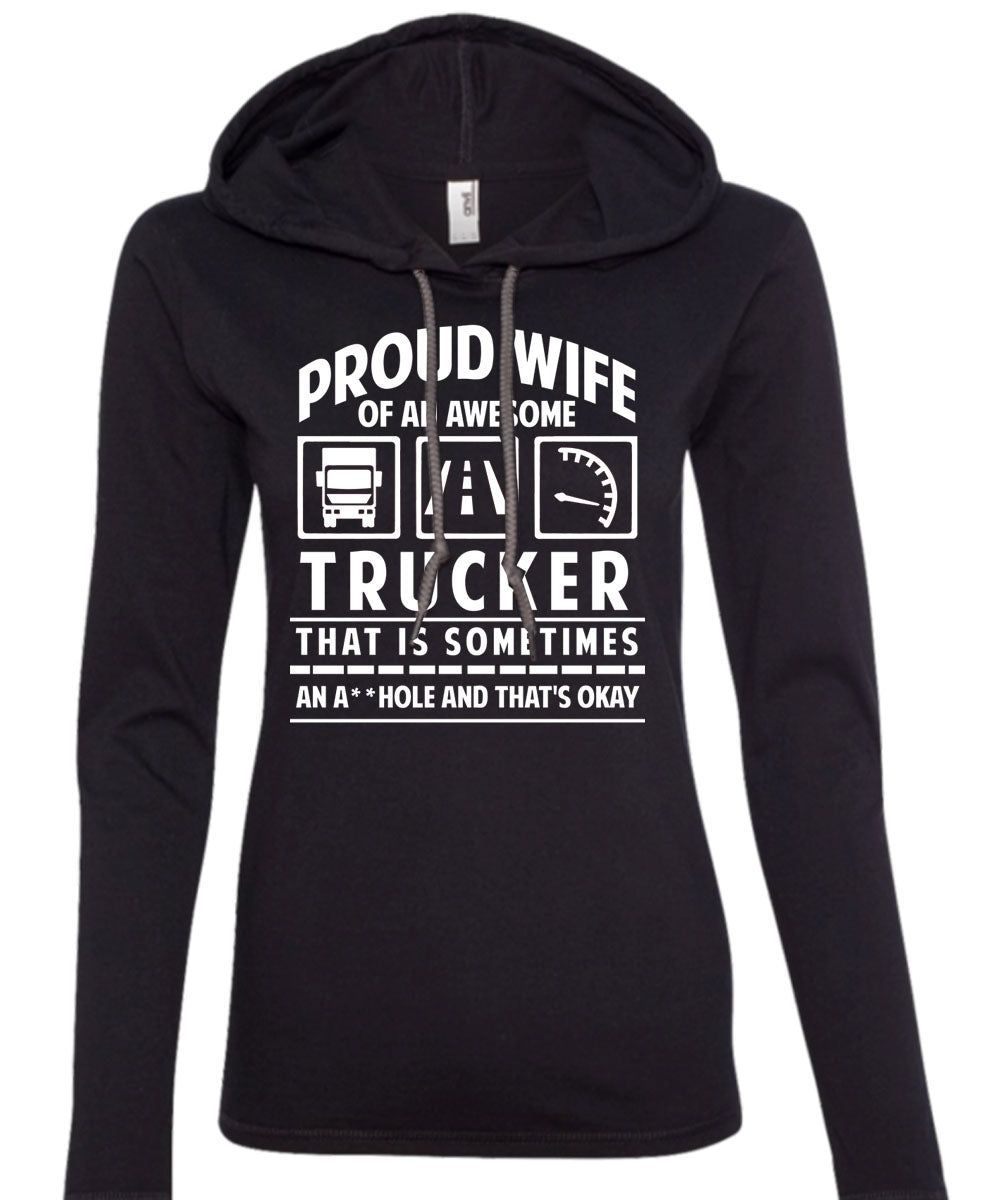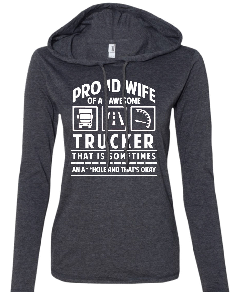 Proud Wife Of An Awesome Trucker T Shirt, Being A Trucker T Shirt (Anvil Ladies Ringspun Hooded)