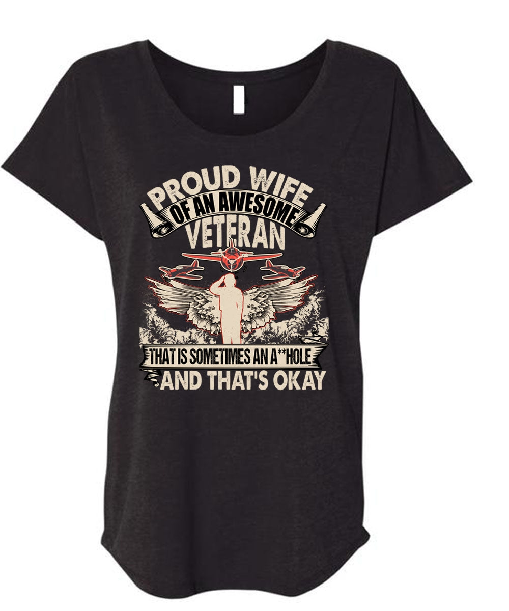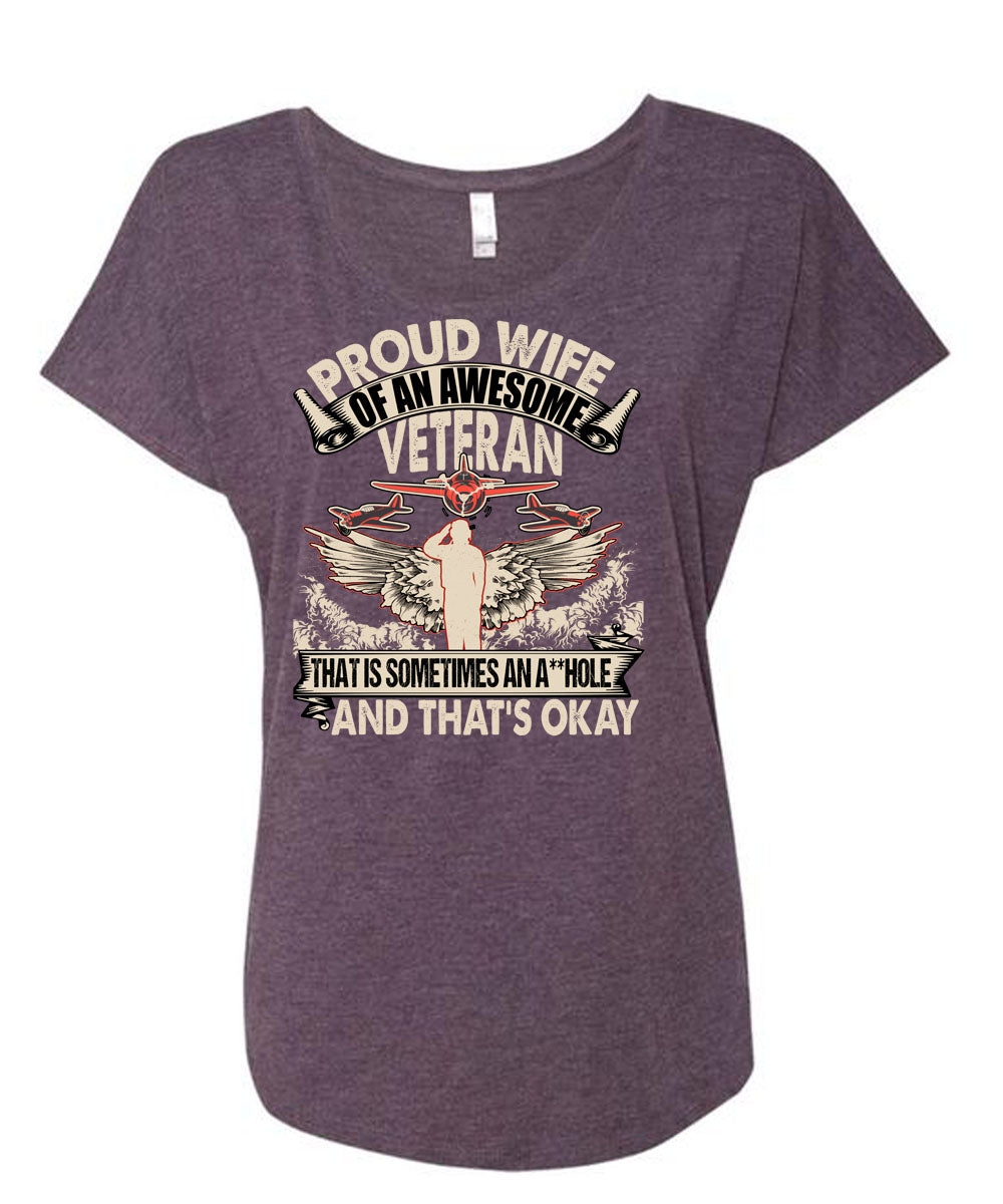 Proud Wife Of An Awesome Veteran T Shirt, Being A Veteran T Shirt, Cool Shirt (Ladies' Triblend Dolman Sleeve)