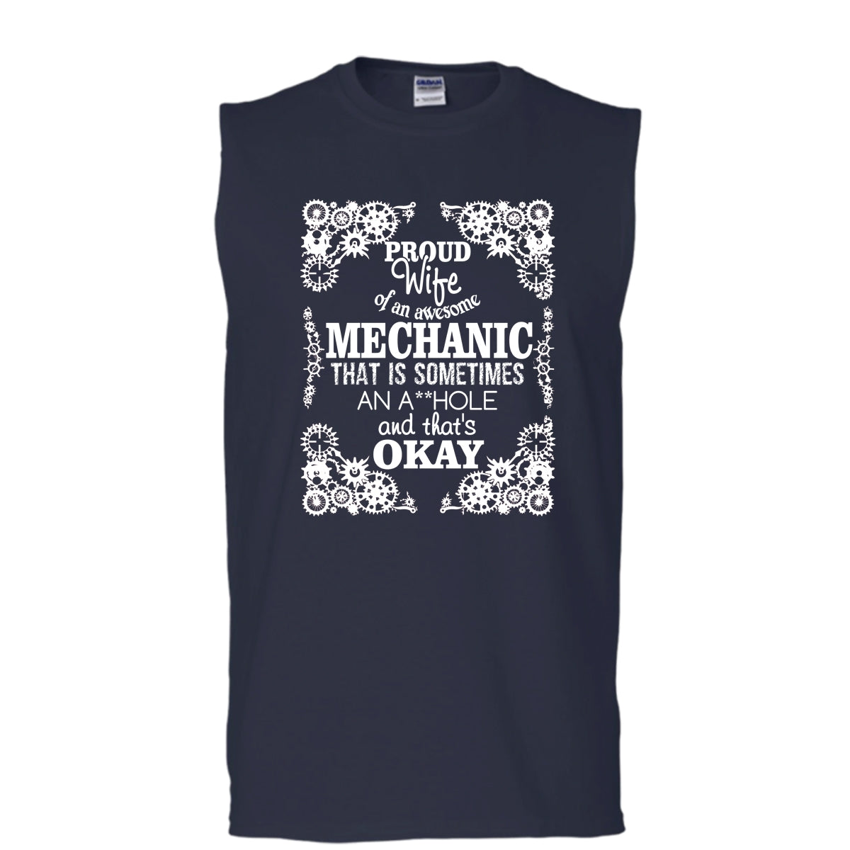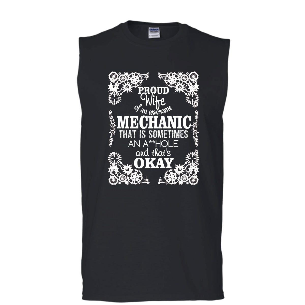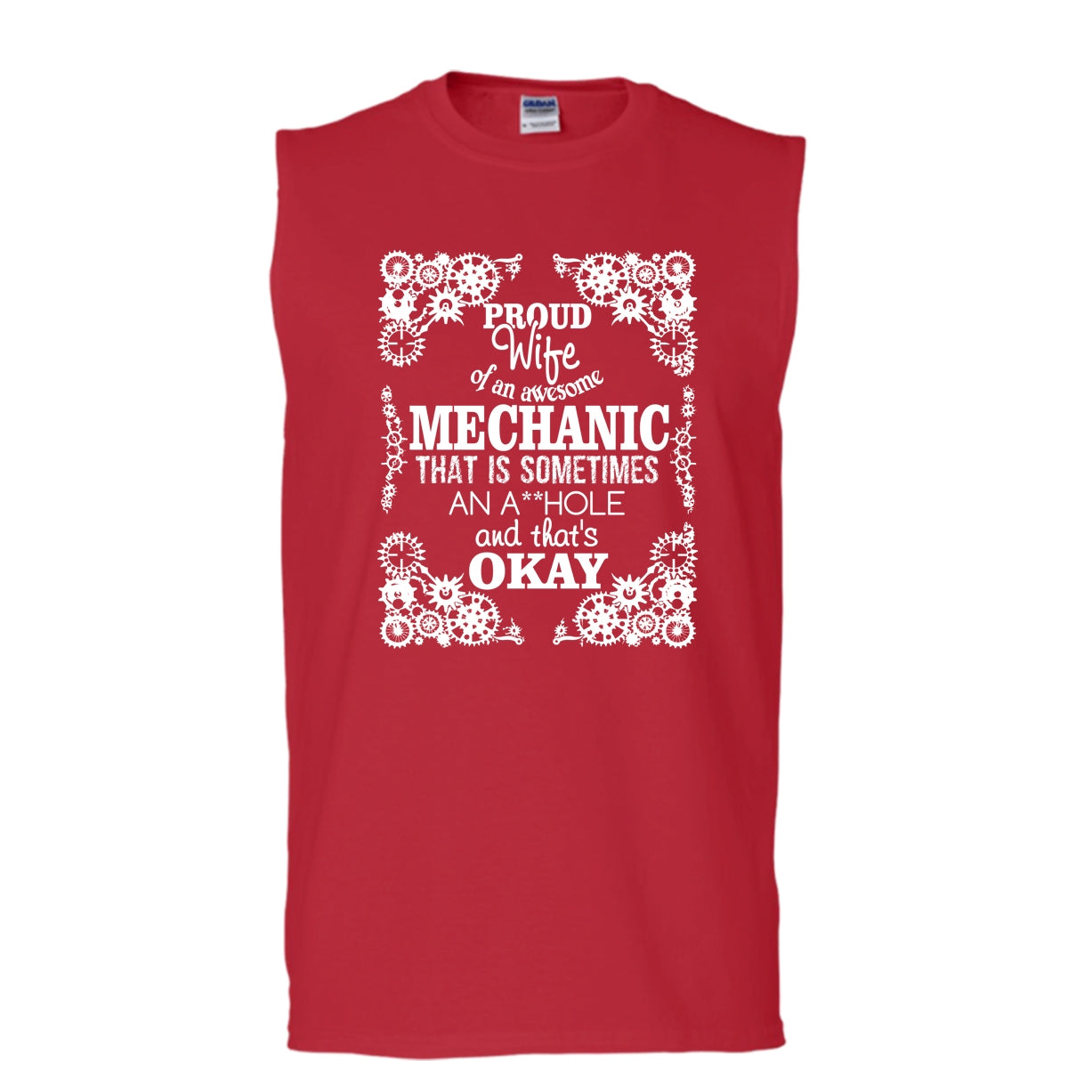 Proud Wife T Shirt, Of An Awesome Mechanic T Shirt, Cool T Shirt (Men's Cotton Sleeveless)